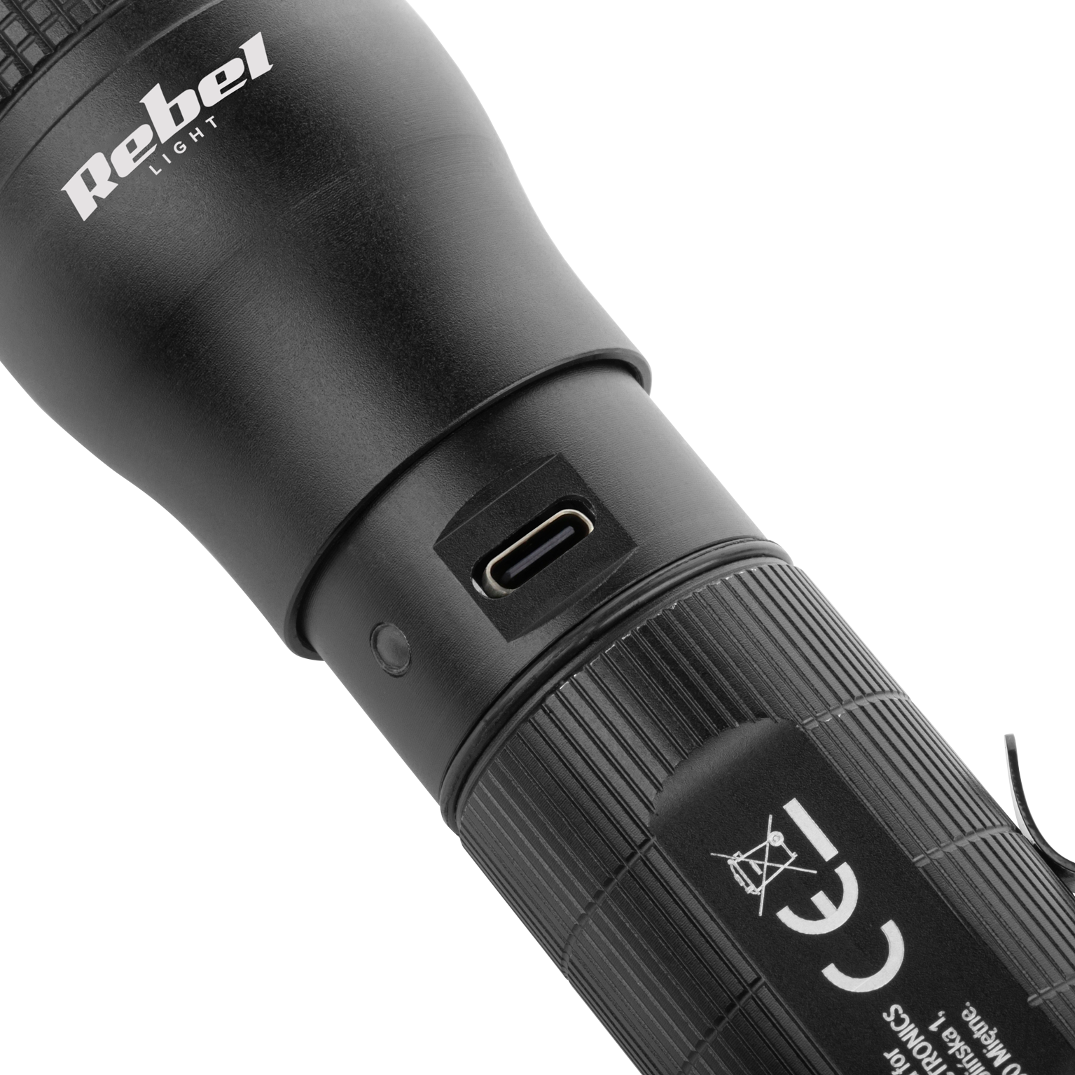 Akumulatorowa latarka ręczna 800lm 10W aluminium RebelLatarka Rebel oferuje pięć trybów świecenia: mocne światło, średnie światło, słabe światło, szybkie miganie oraz SOS. Dzięki tym opcjom możesz dostosować oświetlenie do różnych warunków i potrzeb.