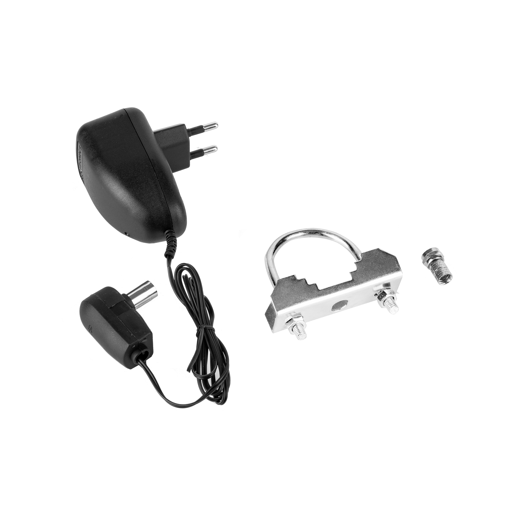 W zestawie: Wodoszczelna złączka, złącze F, akcesoria montażowe