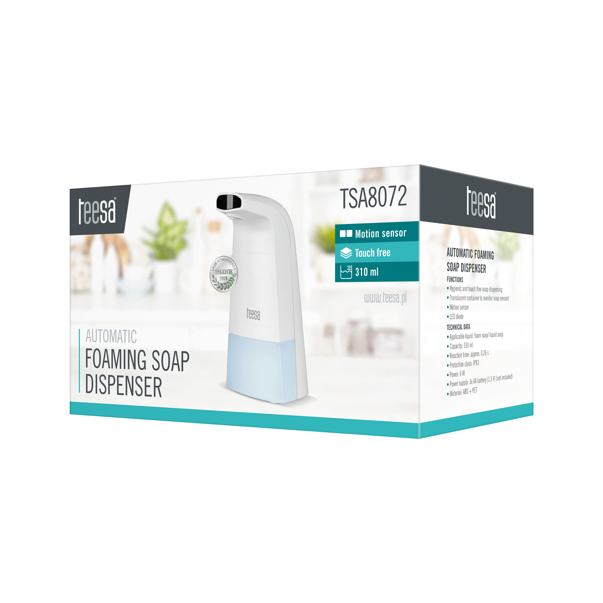 <img src="https://www.lechpol.pl/assets/default/photos/automatyczny-dozownik-mydla-w-pianie-teesa-f43111f83551479a850e7bfa0b018d6f-7ecff239.png" />