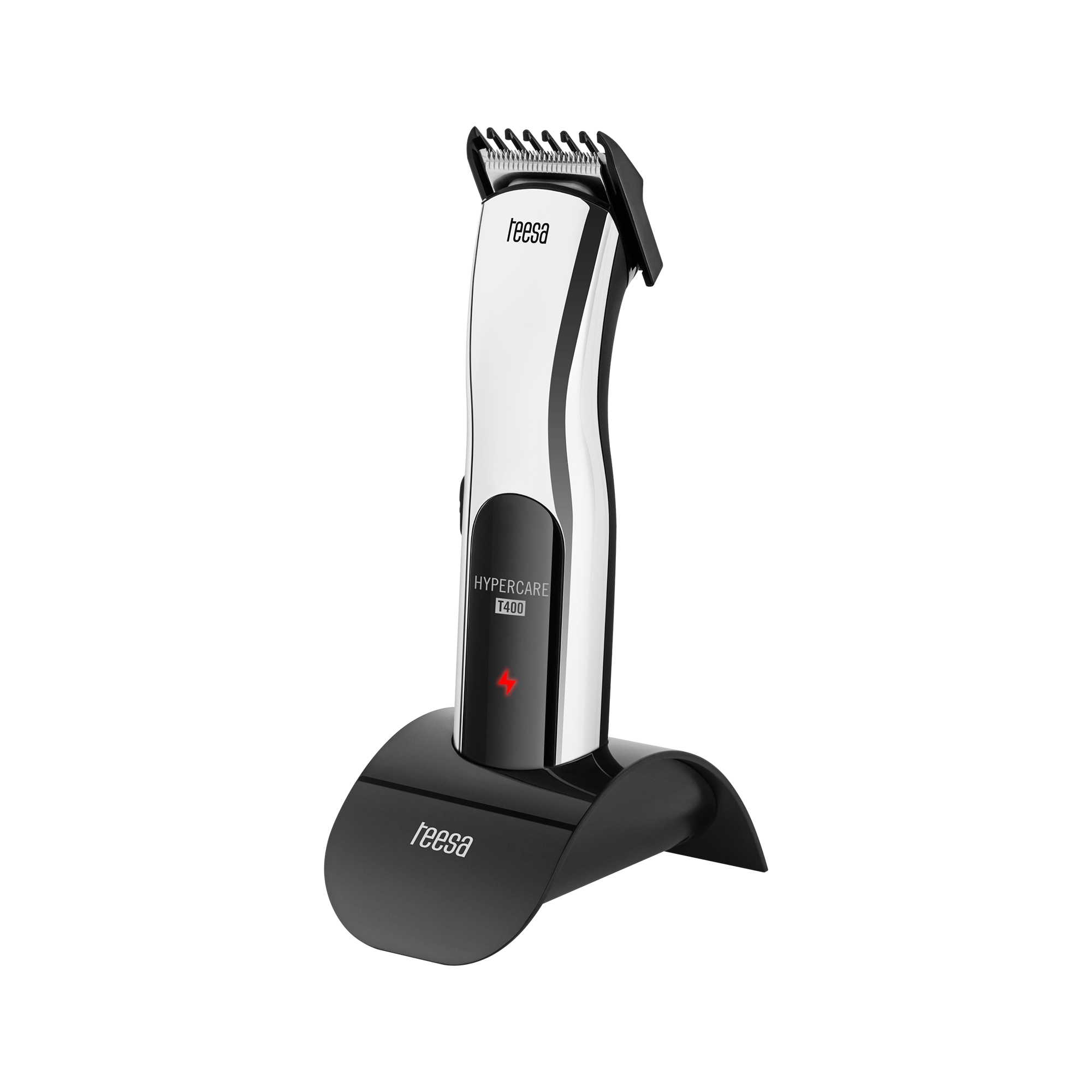 <h2>Wielozadaniowy zestaw</h2><p>Teesa HYPERCARE T400 jest urządzeniem o zaskakująco szerokim zastosowaniu. W zestawie znalazły się cztery różne głowice, które pozwolą przystrzyc włosy, wystylizować brodę czy usunąć owłosienie z nosa.</p>