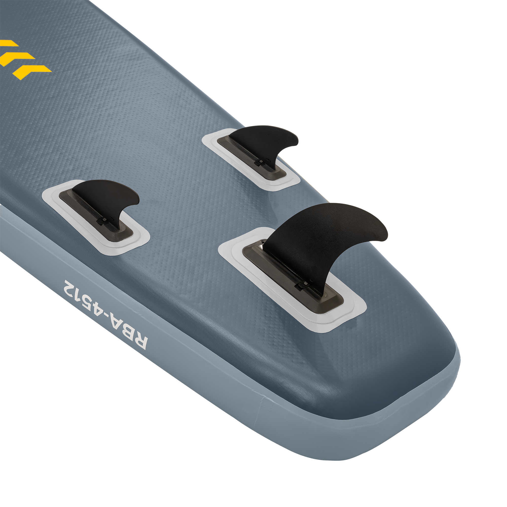 Trzy statecznikiDeska RBA-4512 posiada trzy stateczniki typu slide-in – jeden większy centralny i dwa mniejsze po bokach. Takie wyposażenie stanowi idealną równowagę pomiędzy stabilnością i zwrotnością. Dodatkowe stateczniki boczne poprawiają kontrolę podczas zakrętów i pozwalają na bardziej dynamiczne ruchy np. w czasie surfowania.