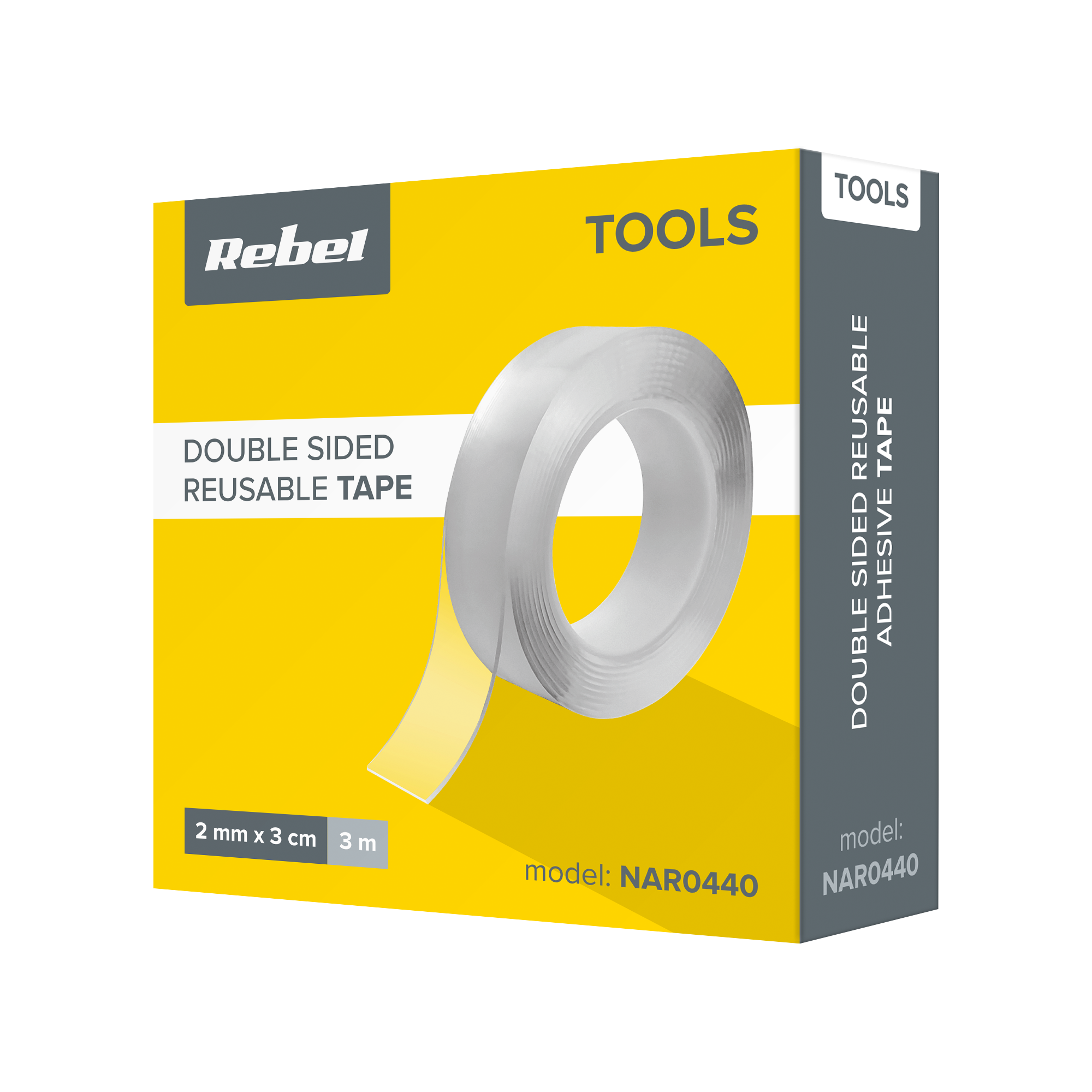 Dwustronna taśma montażowa nano wielokrotnego użytku REBEL (2 mm x 30 mm x 3 m) transparentna LECHPOL22806pl