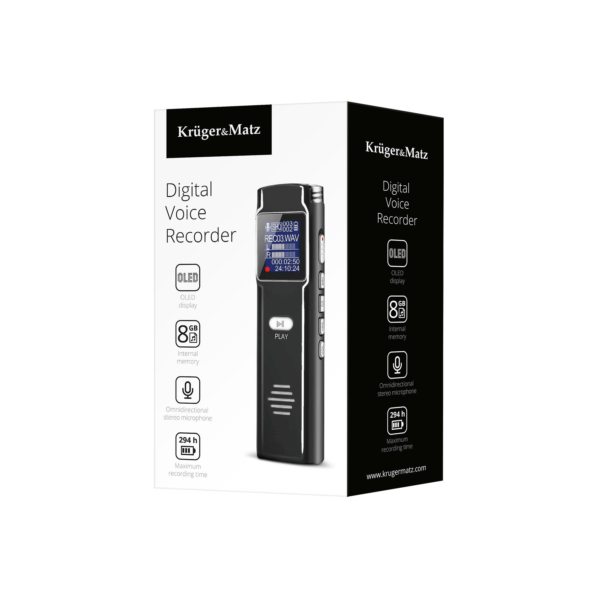 <h2>Dyktafon cyfrowy Kruger&Matz</h2><p>Niewielki, lekki, poręczny - bez problemu zmieści się w małej torebce czy kieszeni. Taki właśnie jest <b>dyktafon cyfrowy Kruger&Matz KM0286 z podświetlanym wyświetlaczem OLED</b>. Urządzenie zostało wyposażone w <b>stereofoniczny, wielokierunkowy mikrofon</b>, który umożliwi Ci nagrywanie w wysokiej jakości zarówno podczas spotkań biznesowych w małej sali konferencyjnej, jak też podczas wykładów w dużej auli uniwersytetu.</p>