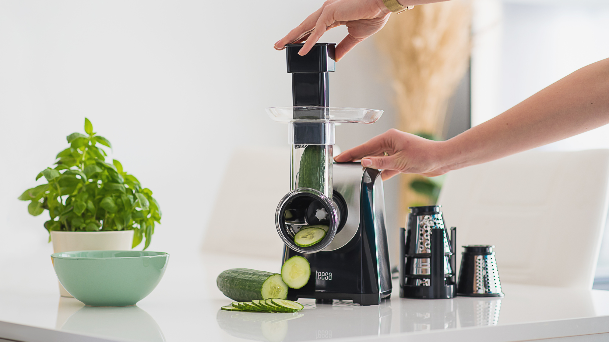 Szatkownica Teesa TSA3025 - 150W, Szybkie i Bezpieczne Krojenie!Szatkownica do warzyw TSA3025 z silnikiem o mocy maksymalnej 150W oraz pięcioma rodzajami tarek, pozwoli przygotować przecier lub też pokroić warzywa i owoce w równe plasterki i słupki bez ryzyka skaleczenia. Produkt idealnie sprawdzi się podczas przygotowywania szybkiej surówki, jak też pomoże w krojeniu warzyw do różnego rodzaju sałatek.
