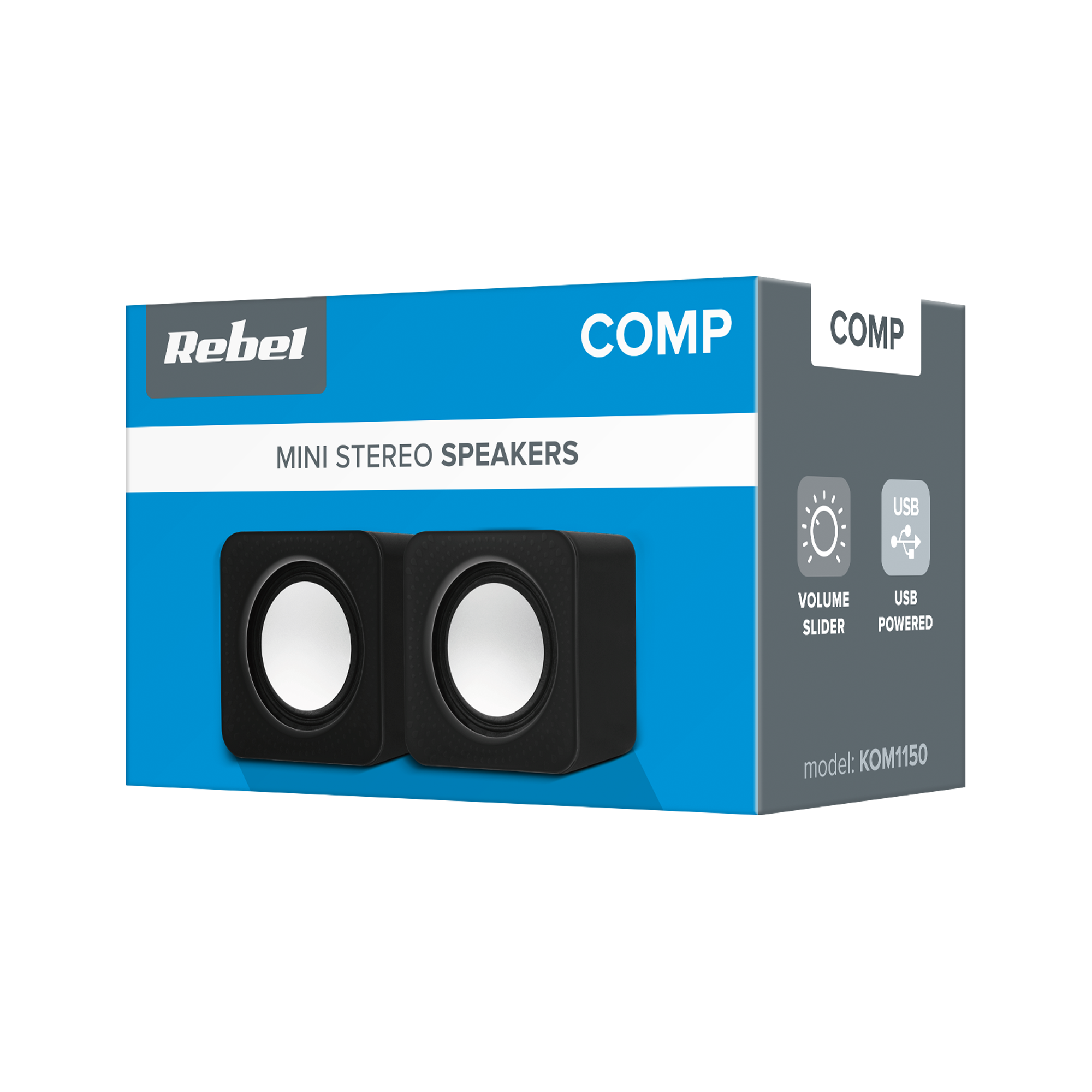<h2>Głośniki komputerowe 2.0 Rebel Comp CS-10</h2><p>Masz mało miejsca na biurku jednak zależy Ci na tym, aby móc oglądać filmy albo odtwarzać muzykę z komputera? A może dźwięk z Twojego laptopa nie jest wystarczająco mocny? Idealnym rozwiązaniem dla Ciebie będą małe głośniki komputerowe, które zapewnią dobre brzmienie, nie zagracając przy tym biurka.</p>