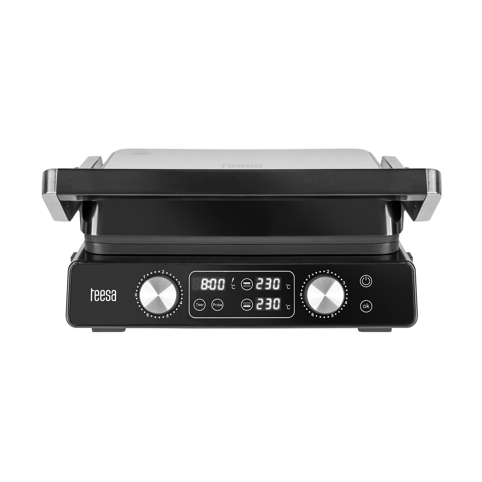 <h2>Precyzyjne grillowanie</h2><p>Zakres temperatury od 140 do 230°C pozwala przygotować zarówno chrupiące tosty, jak i solidnie wysmażone steki. Timer od 0 do 60 minut, ustawiany w 30-sekundowych odstępach, daje pełną kontrolę nad czasem obróbki. Możesz zająć się gośćmi lub rodziną, mając pewność, że grill sam wyłączy się po zakończeniu pracy.</p>