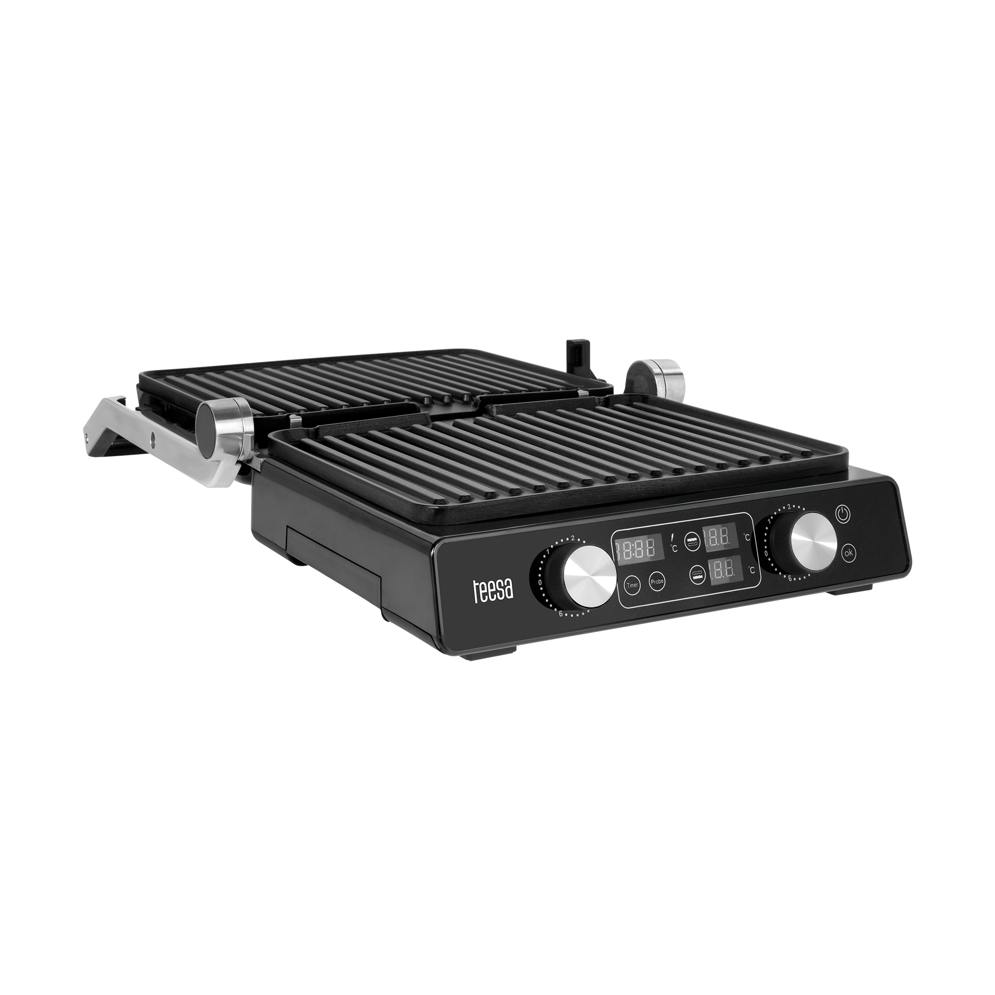 <h2>7 pozycji grillowania</h2><p>Dzięki aż 7 pozycjom ustawienia płyt, panini grill Teesa pozwala precyzyjnie dopasować tryb grillowania do rodzaju potrawy – od cienkich kromek chleba po wysokie burgery czy warzywne szaszłyki. Możesz używać go jako klasycznego grilla kontaktowego, otwartego grilla stołowego czy opiekacza do kanapek. Regulacja kąta sprawia, że jedzenie jest opiekane równomiernie, a jego tekstura pozostaje idealna.</p>