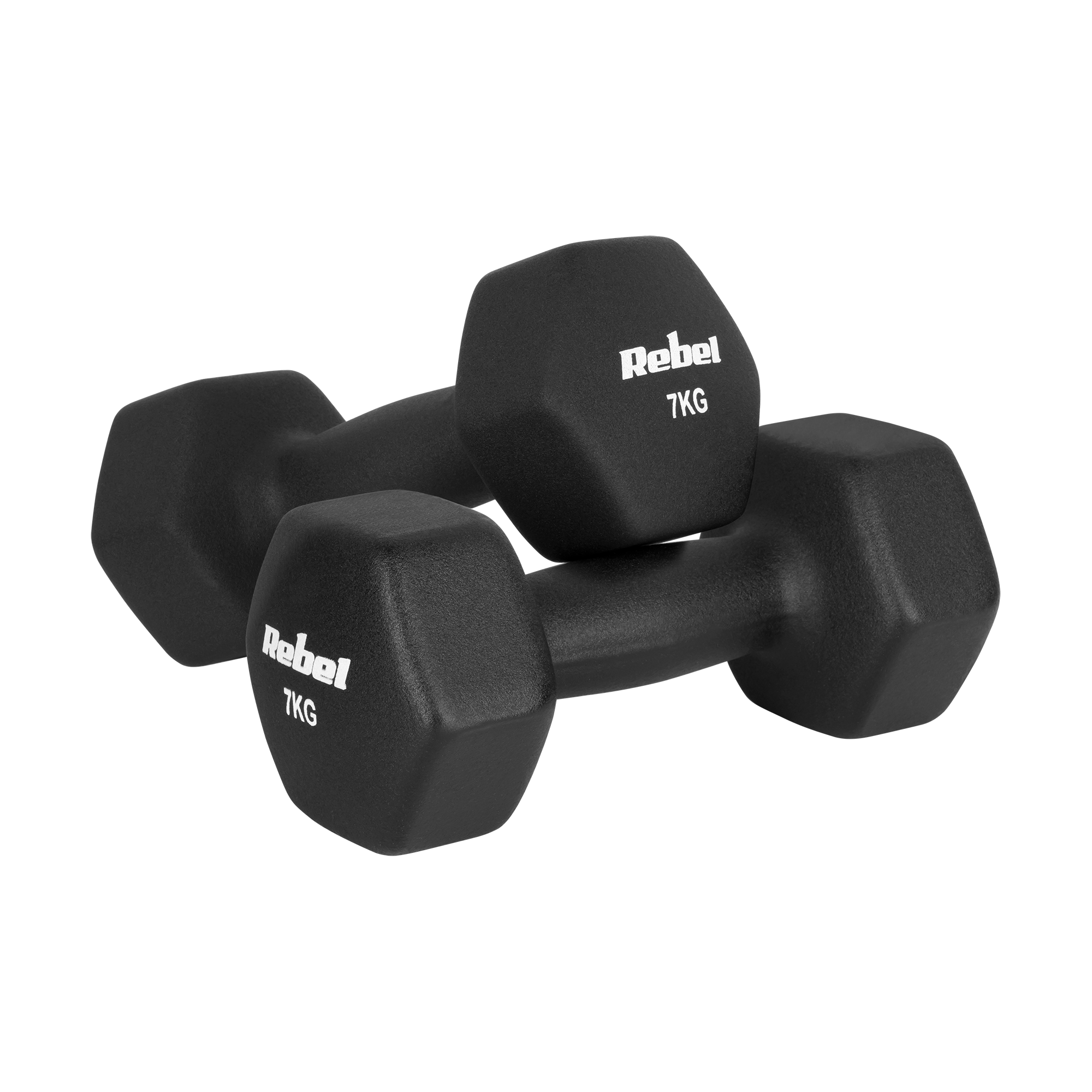 <h1>Hantelki żeliwne neoprenowe HEX 2x 7 kg REBEL ACTIVE</h1><p>Hantelki HEX REBEL ACTIVE 7 kg to wydajne obciążenie do treningu siłowego, fitness i ćwiczeń funkcjonalnych. Doskonale sprawdzą się w domu i na siłowni, umożliwiając skuteczne wzmacnianie mięśni ramion, barków, pleców i klatki piersiowej. Ich waga pozwala na intensywny trening dla średniozaawansowanych i zaawansowanych użytkowników, wspierając rozwój siły, wytrzymałości i efektywności ćwiczeń.</p>