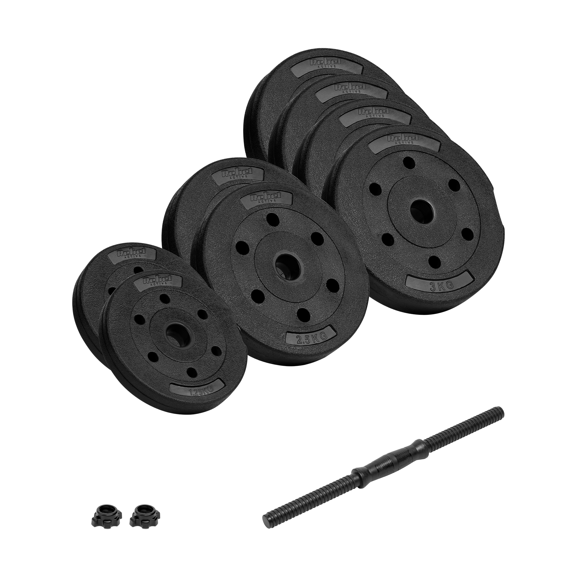<h2>Ćwicz na swoich zasadach</h2><p>Zestaw oferuje różne poziomy obciążenia, dzięki czemu możesz dostosować trening do swoich celów i poziomu zaawansowania. Kluczowym elementem zestawu RBA-2328-20 jest gryf, który umożliwia łączenie talerzy wagowych do tworzenia różnych kombinacji obciążeń, zgodnie z preferencjami i poziomem zaawansowania.</p>