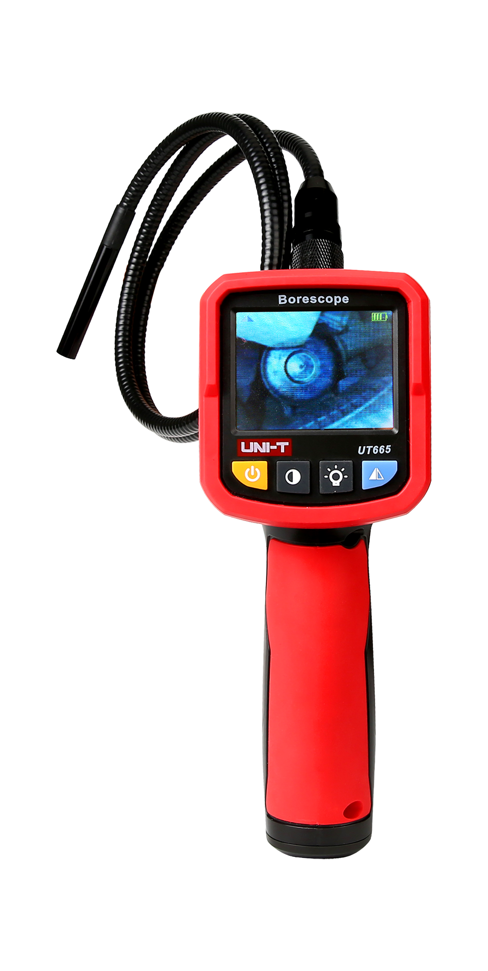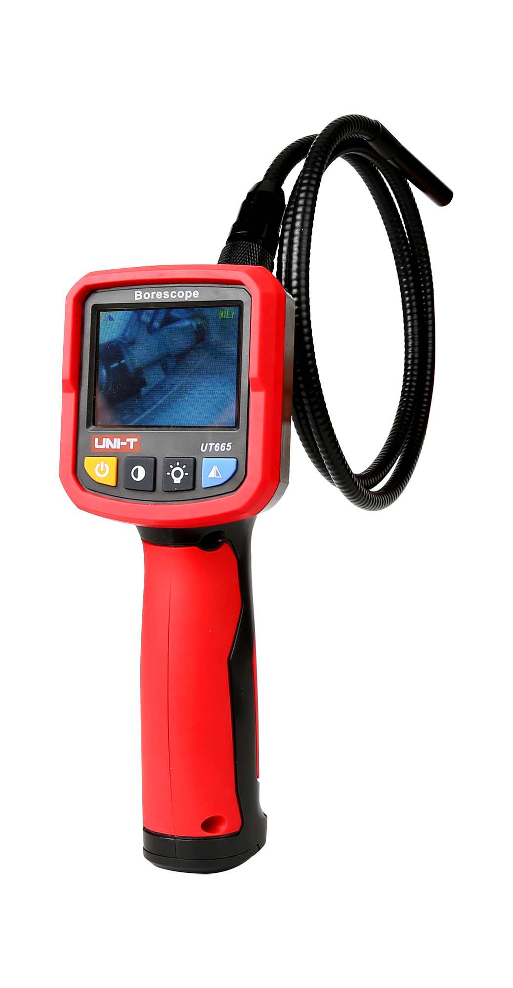 <h2>Wysoka jakość obrazu i precyzyjna inspekcja</h2><p>UT665 oferuje rozdzielczość obrazu 640x480 px, co umożliwia szczegółową obserwację inspekcjonowanych obiektów. Kamera wyposażona jest w wyświetlacz TFT o przekątnej 2,4”, który zapewnia czytelność obrazu nawet w trudnych warunkach oświetleniowych. Sonda o długości 1 metra i średnicy obiektywu 9 mm pozwala na dotarcie do wąskich i ciasnych przestrzeni, a kąt widzenia 60° umożliwia szerokie pole obserwacji.</p>