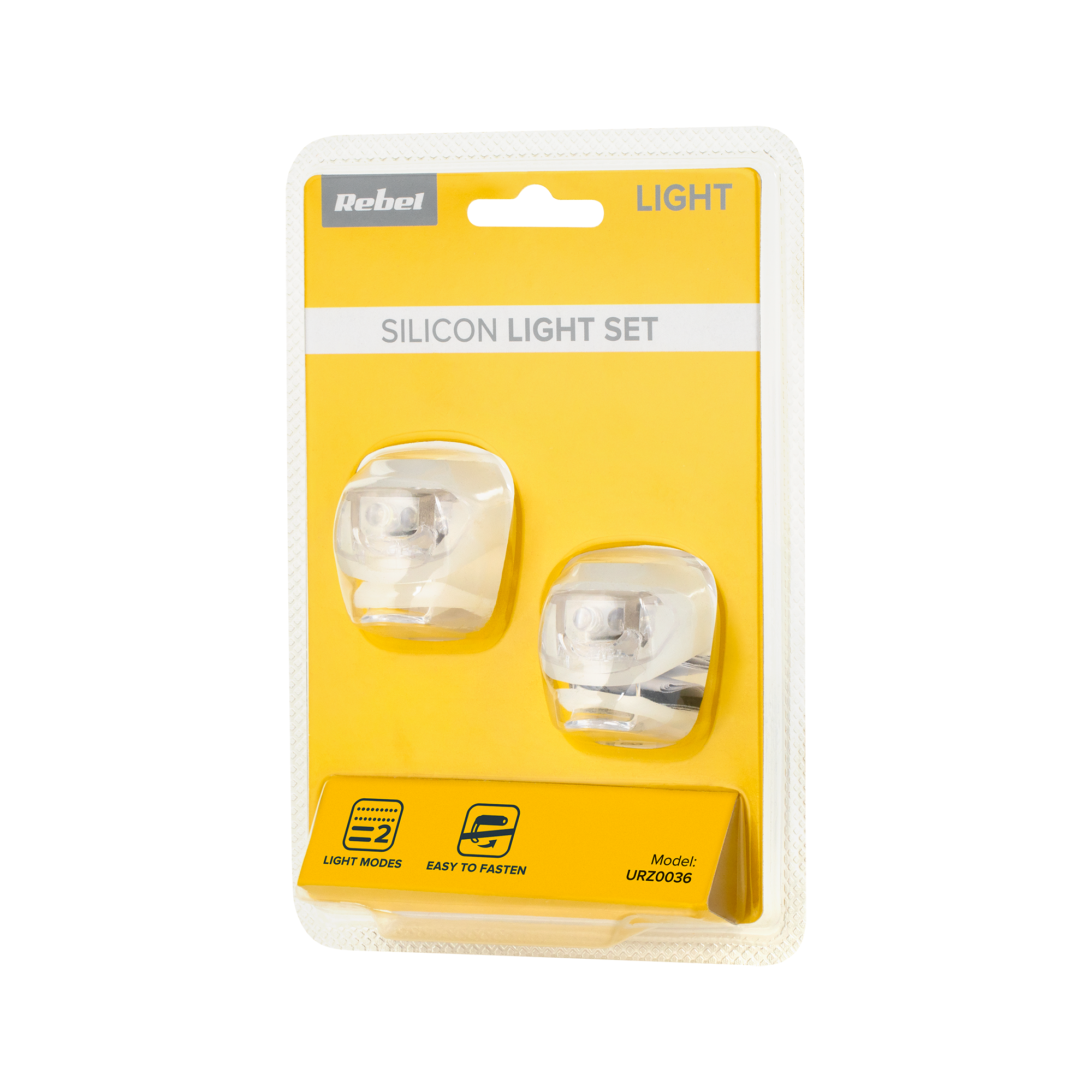 Komplet świateł do roweru (silikonowych)Ten komplet świateł rowerowych to praktyczne i wszechstronne rozwiązanie zapewniające bezpieczeństwo na drodze. Dzięki elastycznej silikonowej konstrukcji, lampy są łatwe w montażu i pasują do większości ram rowerowych o średnicy od 22,2 do 31,8 mm.