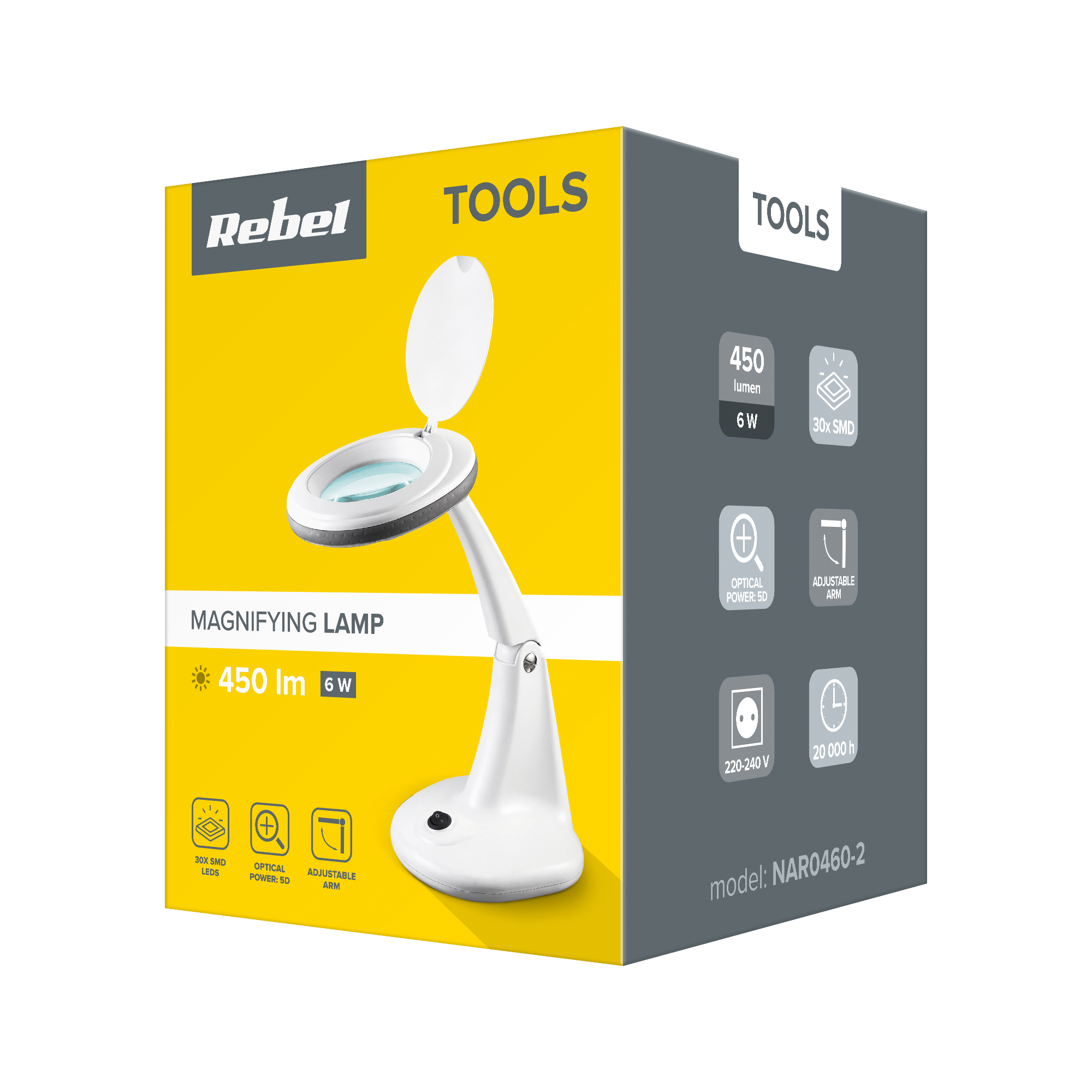 <h2>Lampa z lupą Rebel</h2><p>Jeśli Twoja praca lub hobby wymaga precyzji, koniecznie rozważ zakup lampy z lupą. Model NAR0460-2 z serii Rebel Lights to uniwersalna lampa ze szkłem powiększającym, która ułatwi Ci czytanie drobnego druku, diagnostykę usterek, lutowanie, wytwarzanie biżuterii oraz wiele innych czynności. Będzie to także doskonała lupa kosmetyczna, która ułatwi robienie makijażu czy manicure.</p>