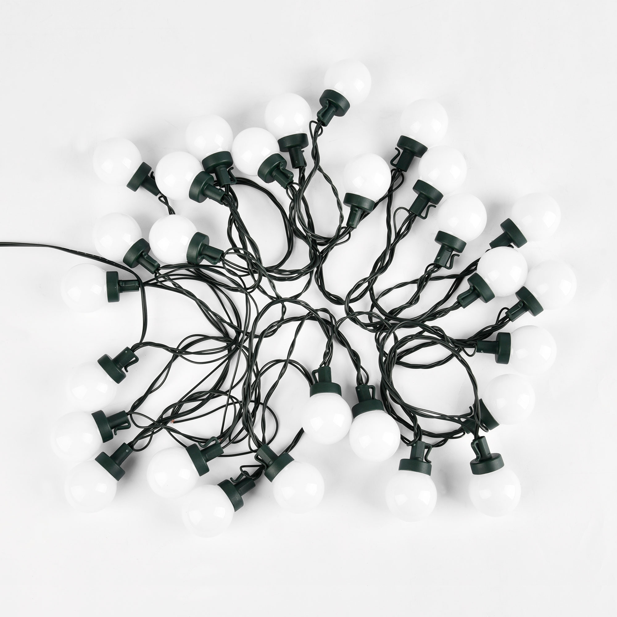 <h2>Wygląd i funkcje</h2><p>Sznur LED wyposażony jest w 30 kul LED o średnicy 35 mm każda, które emitują ciepłe, białe światło. Oferuje 8 trybów świecenia, co pozwala na dostosowanie efektu świetlnego do różnych okazji i nastrojów.</p>