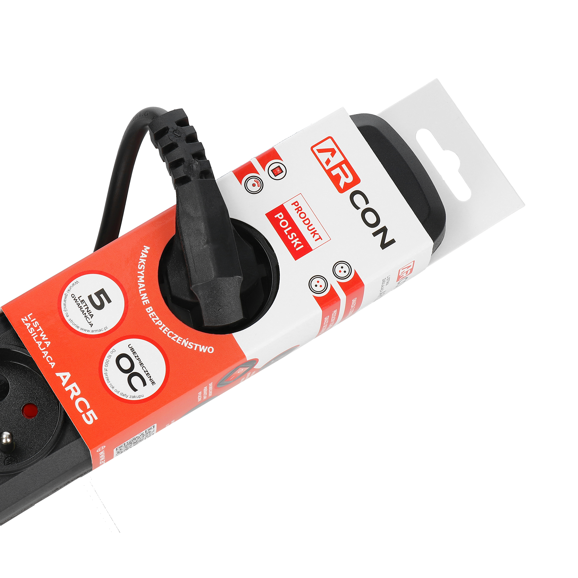 ARcon ARC 5 to solidna 5-gniazdowa listwa zasilająca przeznaczona do zastosowania w każdym nowoczesnym domu lub biurze, dzięki zastosowaniu specjalnego systemu do ochrony przeciwzwarciowej listwa zapewni skuteczne bezpieczeństwo podłączonych do niej urządzeń.