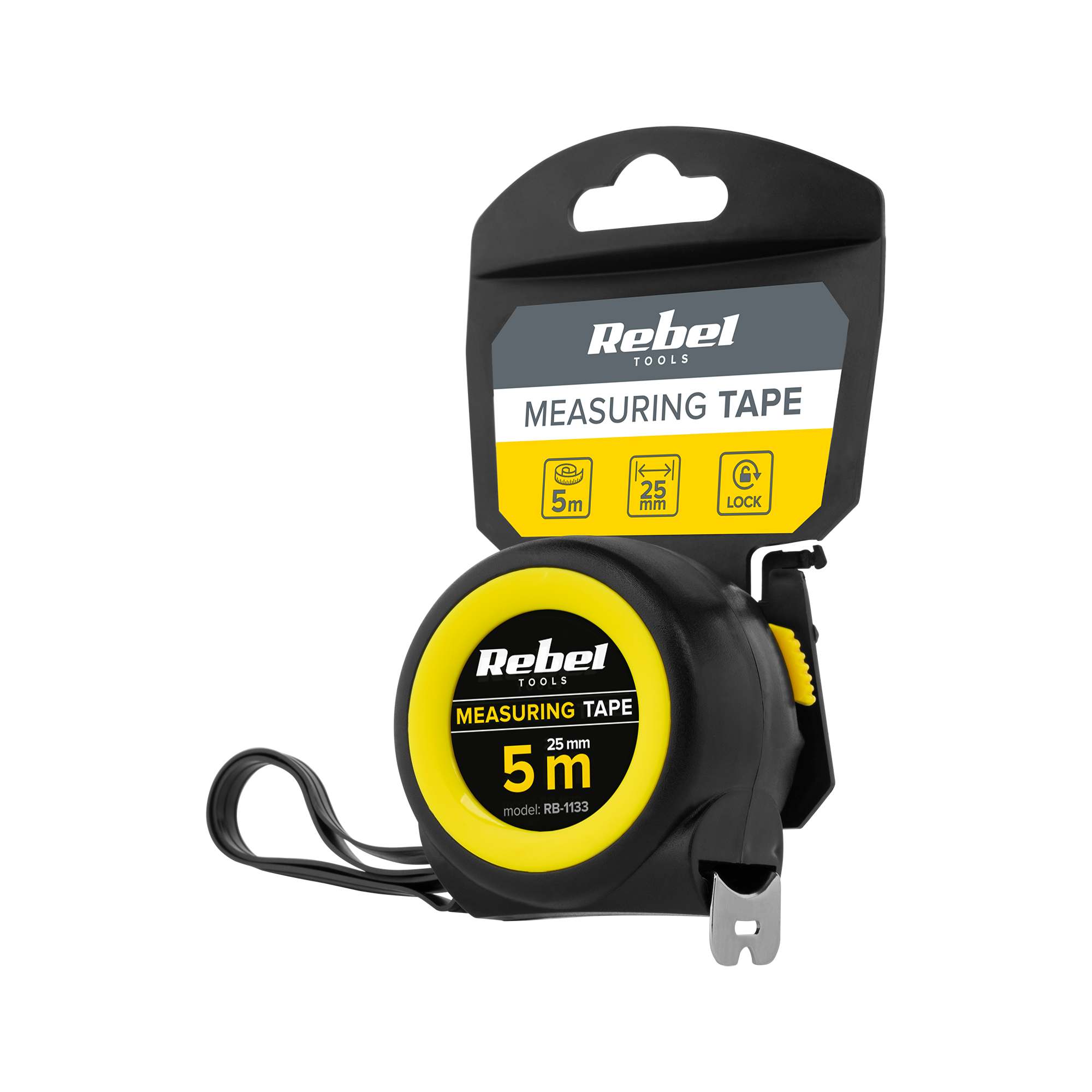 <h2>Precyzyjna miara</h2><p><b>Taśma miernicza Rebel o zasięgu 5 m wykonana została ze stali</b>, co w połączeniu z solidną obudową z tworzywa sztucznego<b> gwarantuje dużą żywotność i odporność na uderzenia i inne uszkodzenia</b>. <b>Zaczep mierniczy </b>oraz <b>przycisk blokady</b>, w połączeniu z <b>dużą szerokością przyrządu (25 mm)</b>, ułatwiają <b>dokładny pomiar dużych odległości bez podparcia</b>, dzięki czemu samodzielnie poradzisz sobie z pomiarem niemal w każdej sytuacji.</p>