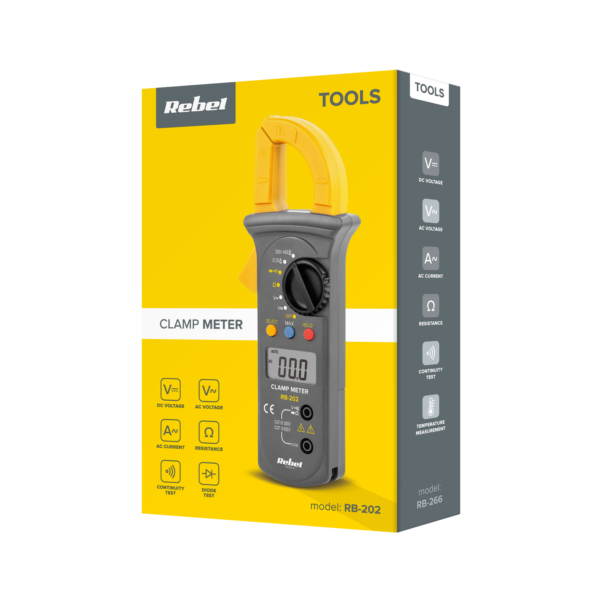 <h2>Miernik cęgowy REBEL RB-202</h2><p>Miernik cęgowy REBEL RB-202 to wszechstronne urządzenie przeznaczone do precyzyjnych pomiarów elektrycznych, łączące funkcje multimetru z możliwością pomiaru natężenia prądu za pomocą cęgów. Dzięki solidnej konstrukcji i szerokim możliwościom pomiarowym, jest idealnym narzędziem zarówno dla profesjonalistów, jak i hobbystów.</p>