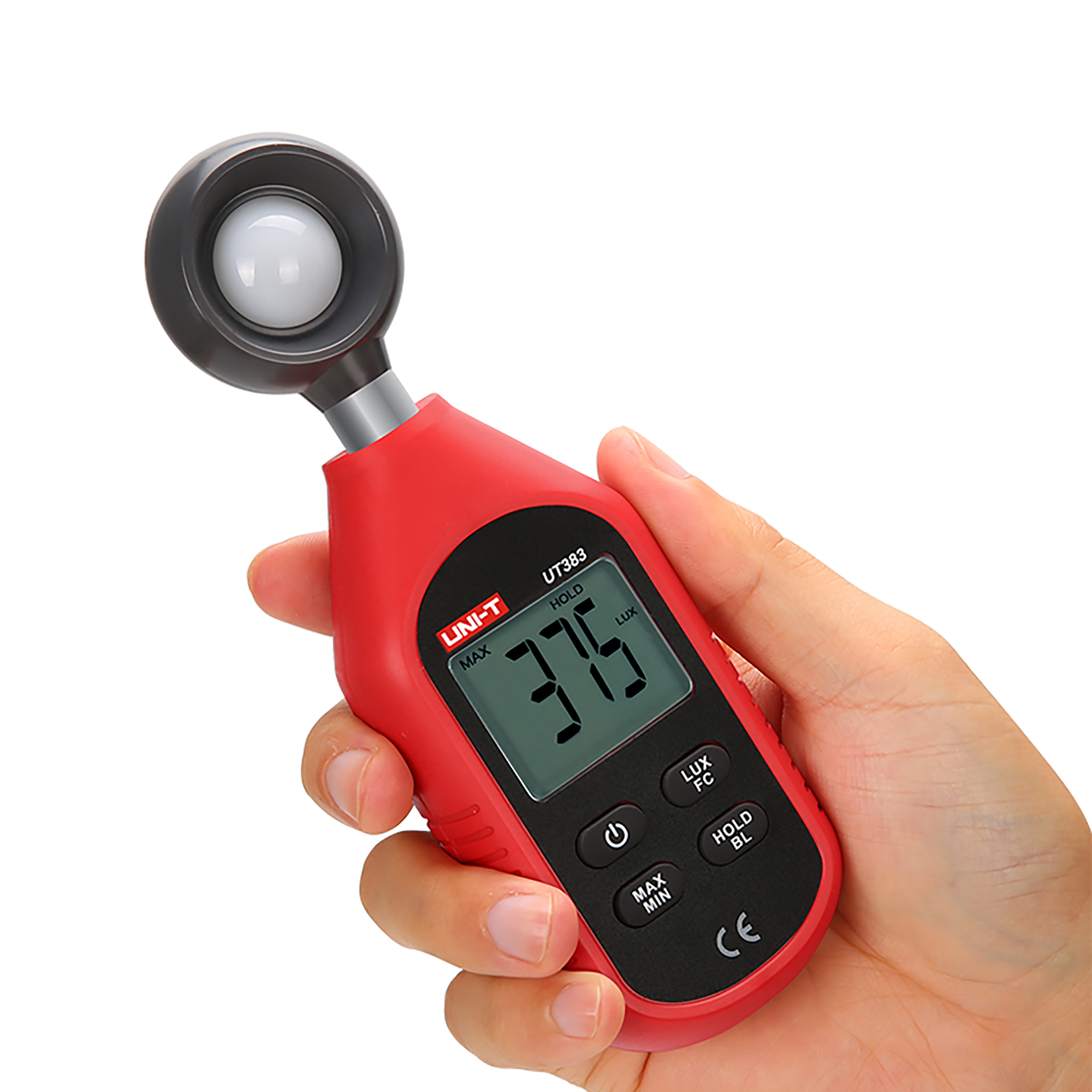 <h2>Funkcje wspierające pracę</h2><p>UT383 został wyposażony w funkcję pomiaru w dwóch jednostkach: luksach (lx) oraz kandela (cd), co umożliwia dostosowanie pomiarów do specyficznych potrzeb użytkownika. Urządzenie oferuje także funkcję zapisu wartości maksymalnej i minimalnej (MAX/MIN) oraz zamrożenie ostatniego wskazania, co ułatwia analizę wyników. Podświetlany ekran oraz funkcja automatycznego wyłączania zwiększają komfort użytkowania, a informacja o przekroczeniu zakresu pomiarowego zapewnia dodatkowe bezpieczeństwo podczas pracy.</p>