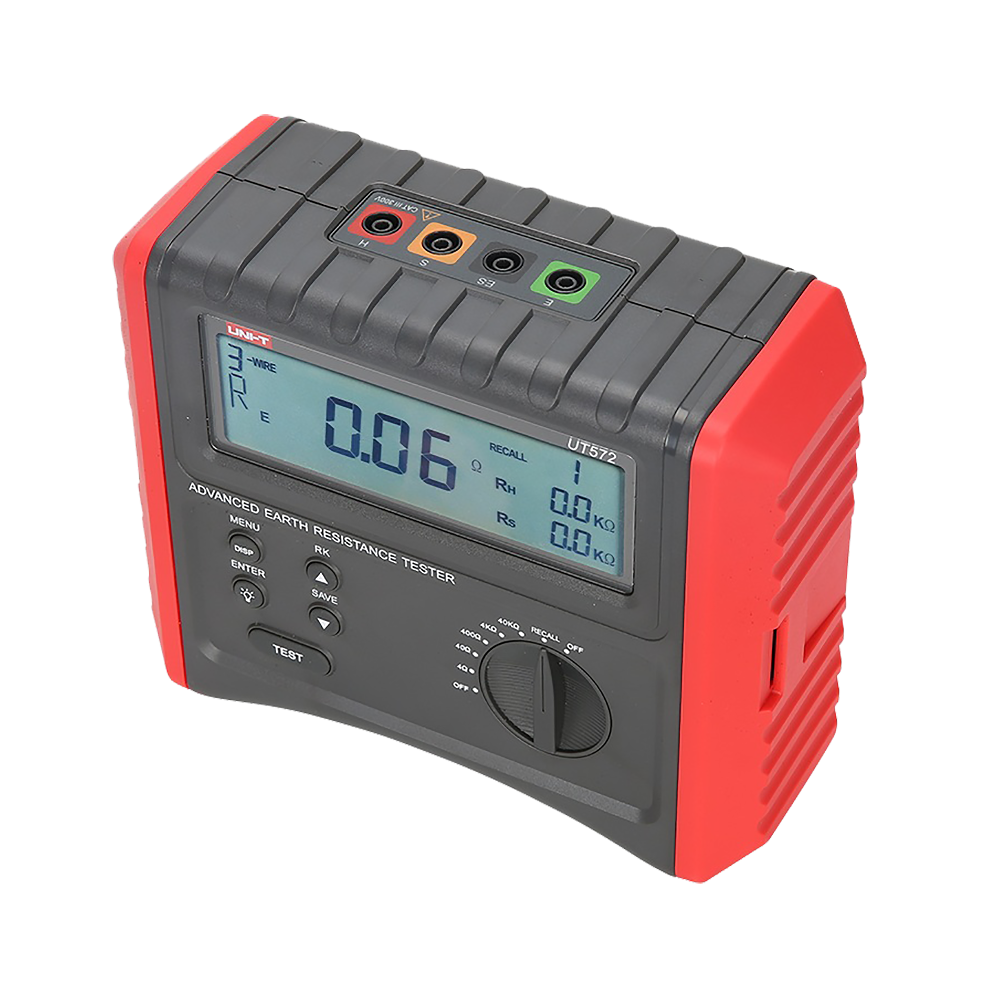 <h2>Wszechstronny i precyzyjny pomiar</h2><p>UT572 umożliwia badanie rezystancji uziemień w zakresie od 4 ? do 40 k? oraz rezystywności gruntu na dystansie 1–40 m. Obsługa pomiarów 2-, 3- i 4-przewodowych pozwala na dostosowanie metody do specyfiki instalacji. Wysoka dokładność, ręczna zmiana zakresów oraz możliwość kontroli napięcia i częstotliwości prądów błądzących czynią go niezastąpionym narzędziem w pracy elektryka.</p>