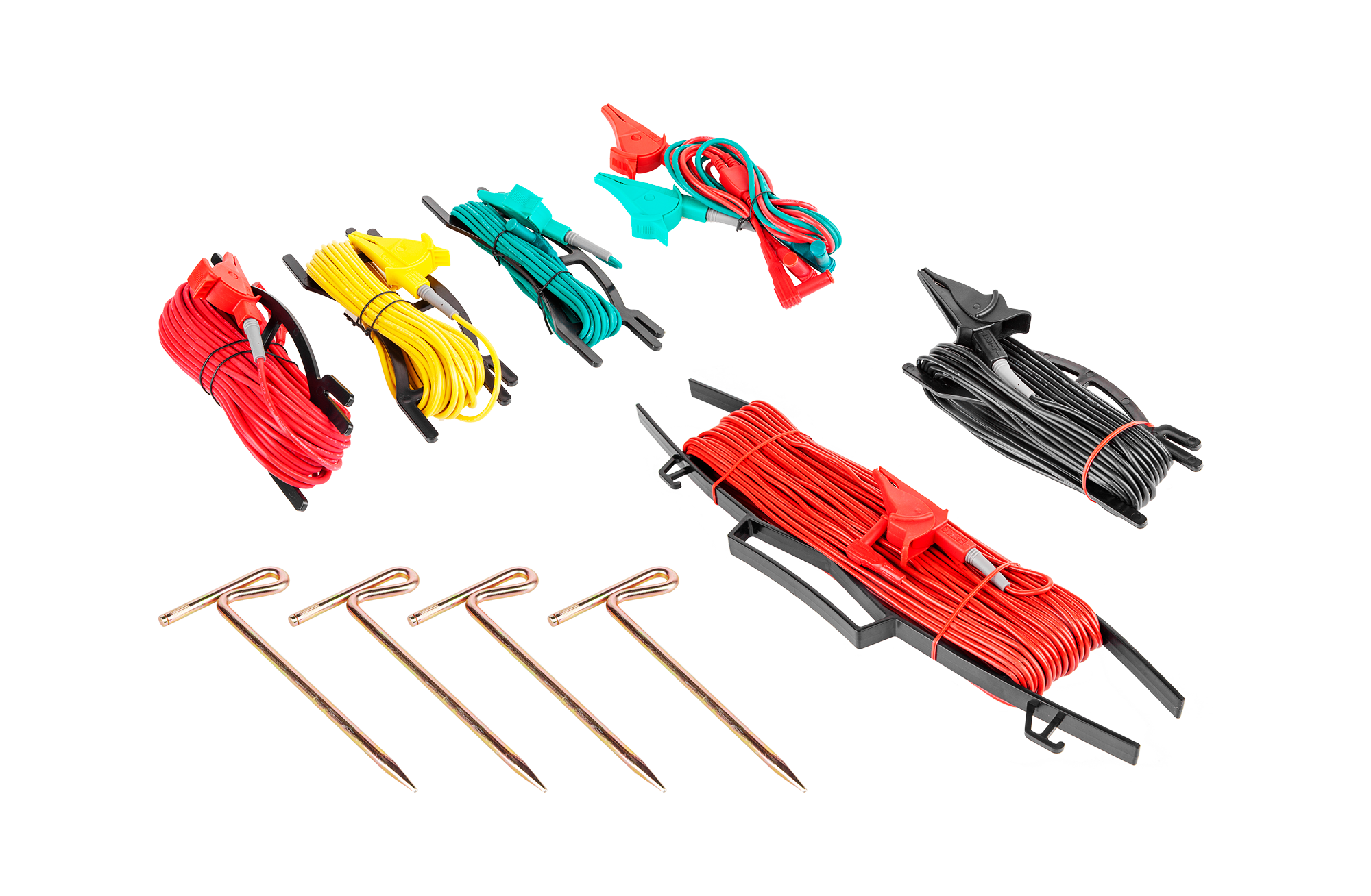Akcesoria: baterie, 7x przewód pomiarowy z krokodylkiem, 2x elektroda pomiarowa, etui
