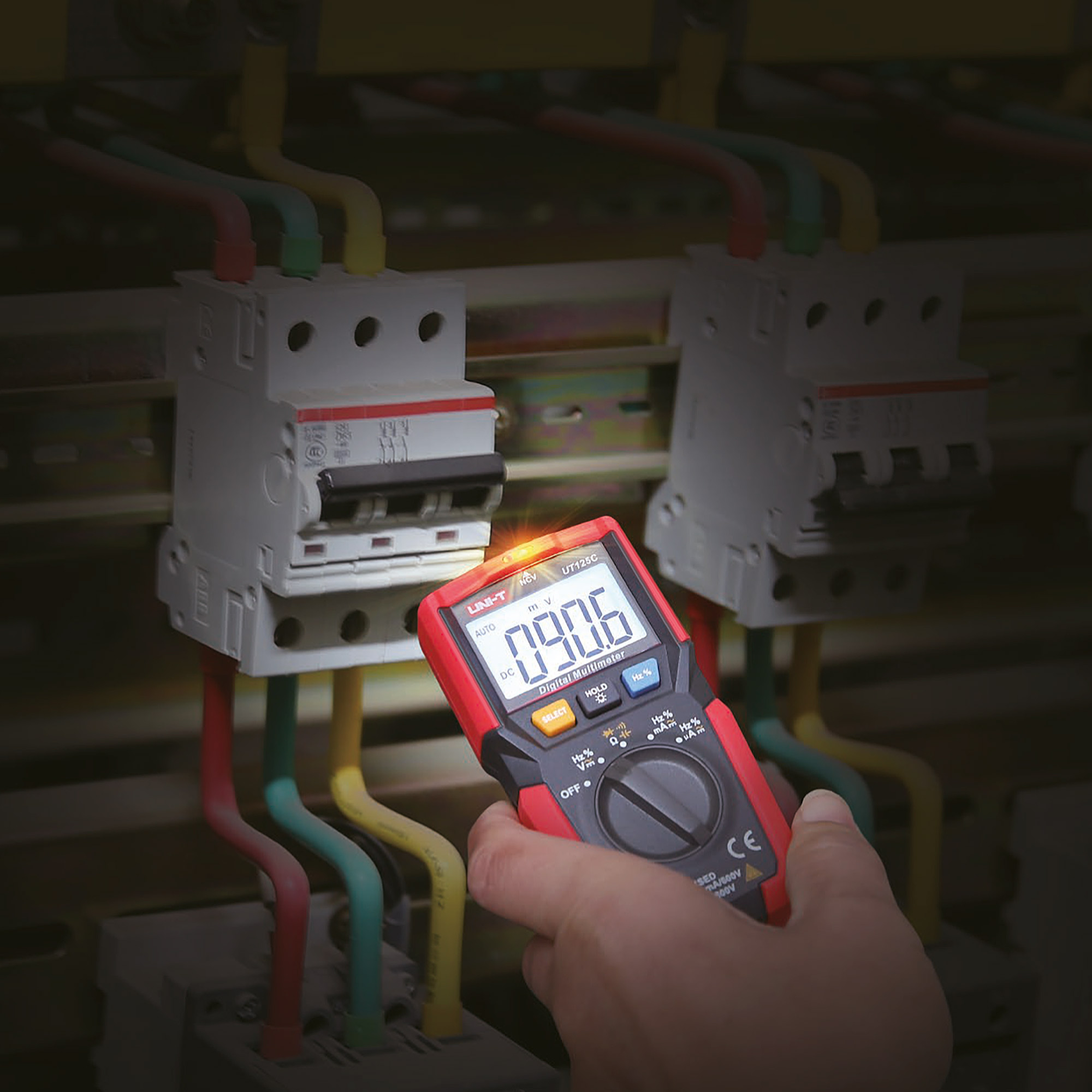 <h2>Funkcje wspierające precyzyjne pomiary</h2><p>UT125C został wyposażony w funkcję automatycznej zmiany zakresów pomiarowych, co ułatwia i przyspiesza pracę. Funkcja wykrywania pola elektrycznego umożliwia bezkontaktowe zlokalizowanie przewodów pod napięciem, co zwiększa bezpieczeństwo użytkowania. Miernik oferuje również funkcję zamrożenia ostatniego wskazania, podświetlenie wyświetlacza LCD oraz wskaźnik niskiego poziomu baterii, co podnosi komfort pracy. Automatyczne wyłączanie urządzenia oszczędza energię, a maksymalny odczyt wynoszący 4000 zapewnia precyzyjne pomiary.</p>
