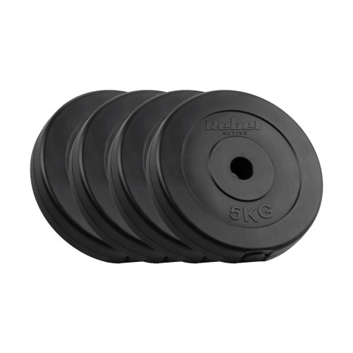 <h2>Poczuj tę moc!</h2><p>Zestaw obciążeń bitumicznych Rebel Active składa się z 4 talerzy o wadze 5 kg każdy, co pozwoli Ci dostosować trening do własnych możliwości. To idealne rozwiązanie dla treningu siłowego, wzmacniania mięśni, czy treningu interwałowego zarówno dla osób początkujących, jak i bardziej zaawansowanych.</p>