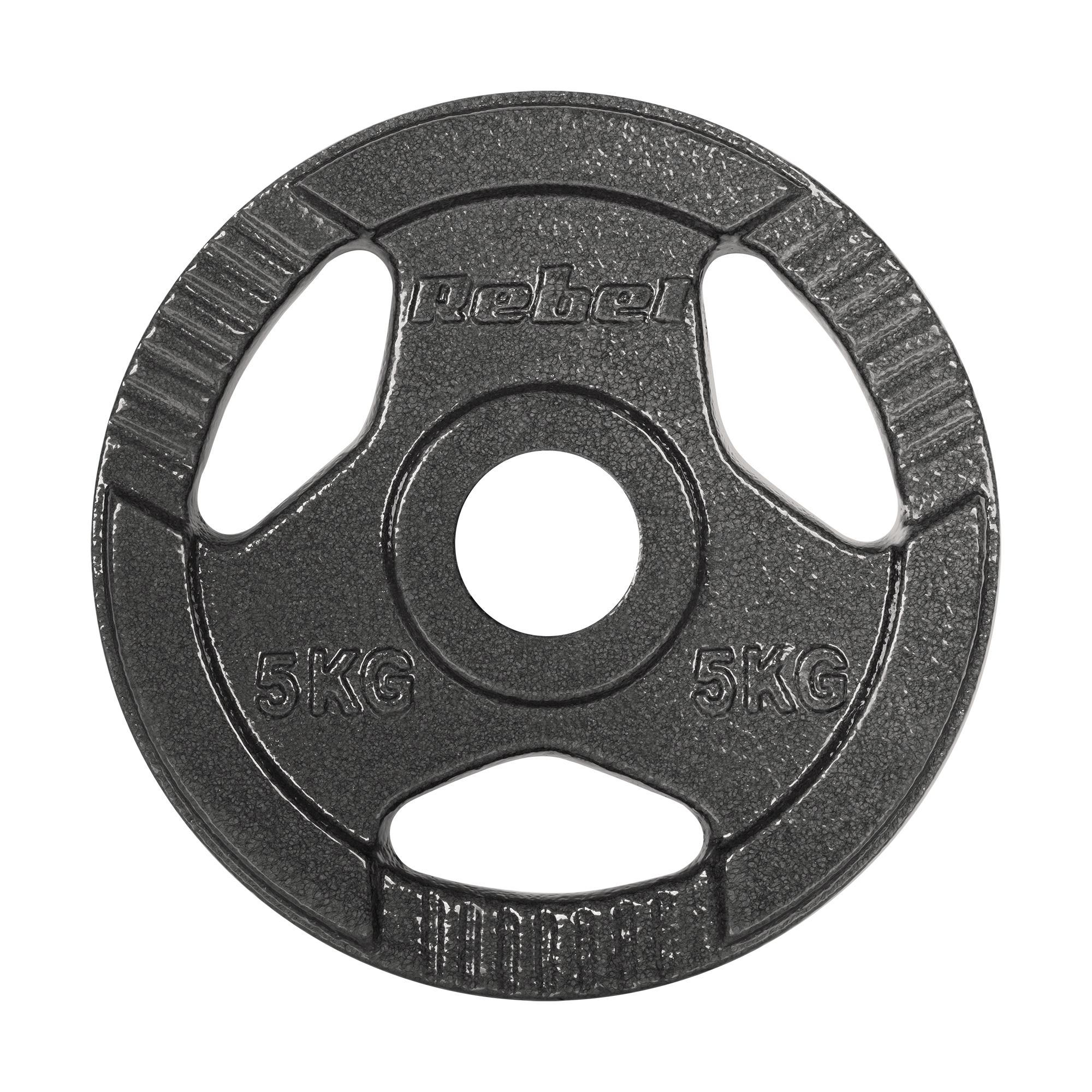 <h2>3 wyprofilowane uchwyty</h2><p>Obciążenia żeliwne Rebel Active posiadają trzy odpowiednio wyprofilowane uchwyty, które umożliwiają wykonywanie różnorodnych ćwiczeń siłowych bez potrzeby dodatkowego sprzętu. Dzięki kompaktowym rozmiarom i ergonomicznemu kształtowi talerzy, ich przechowywanie oraz transport są niezwykle łatwe.</p>