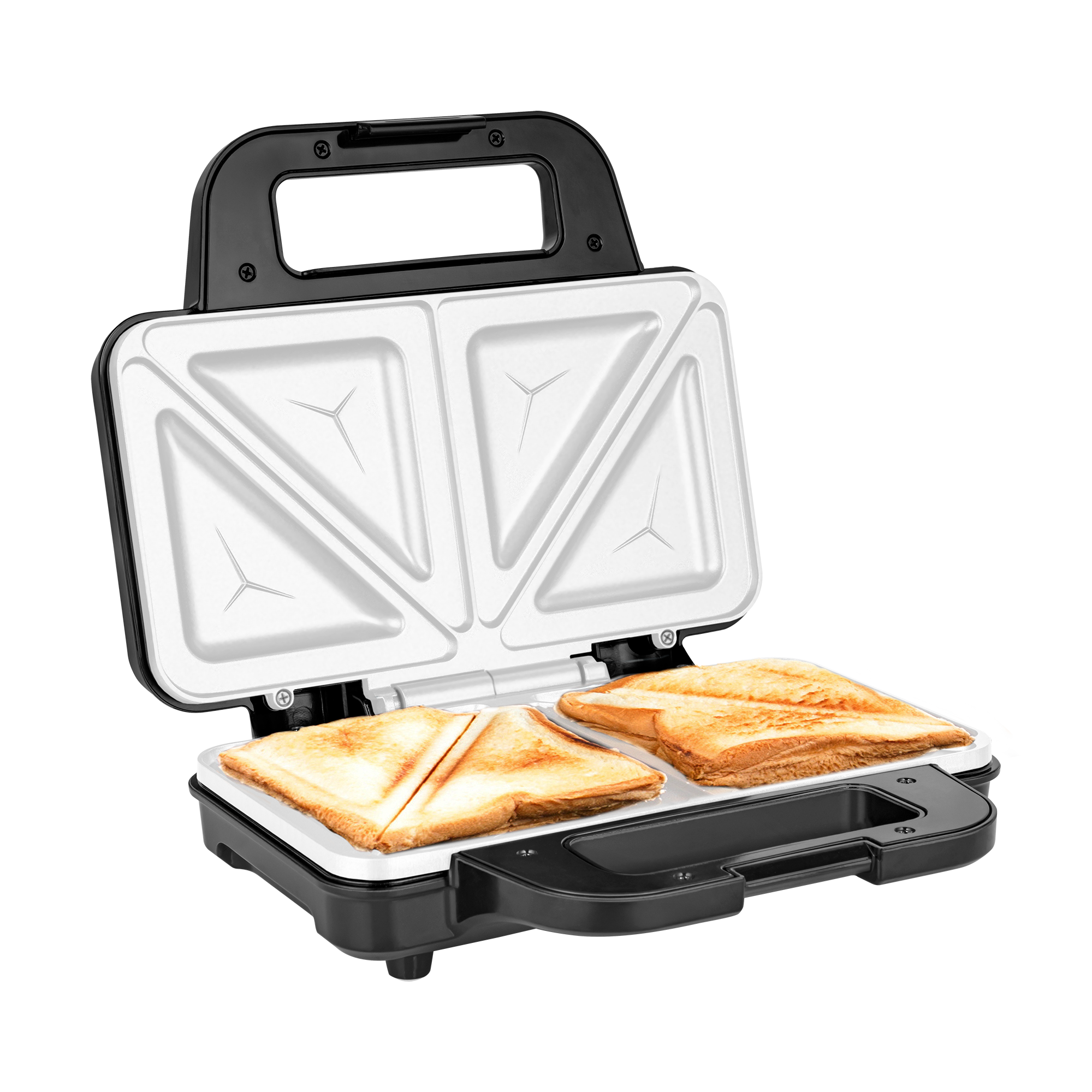 <h2>Bezpieczna konstrukcja</h2><p>Opiekacz wyposażono w nienagrzewający się uchwyt oraz zabezpieczenie przed przegrzaniem, dzięki czemu korzystanie z urządzenia jest komfortowe i bezpieczne dla całej rodziny. Antypoślizgowe stopki stabilnie trzymają urządzenie w miejscu, a wyraźne wskaźniki informują o zasilaniu i gotowości do pracy.</p>
