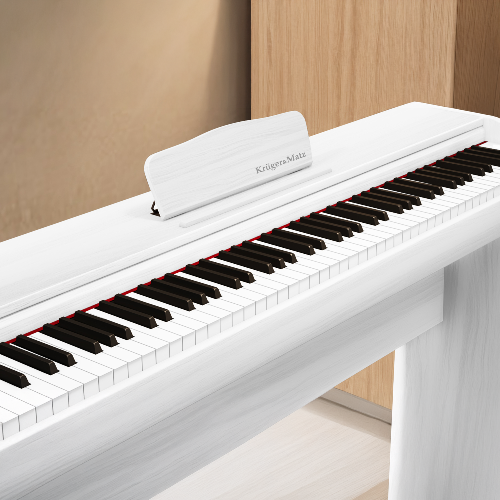 <h2>Więcej możliwości</h2><p>Elektroniczne pianino Kruger&Matz wyposażone zostało w Bluetooth 5.0, co umożliwia stabilne i szybkie bezprzewodowe połączenie z urządzeniami mobilnymi i swobodne korzystanie z aplikacji do nauki gry. programów do nagrywania oraz biblioteki cyfrowych partytur. Ponadto do dyspozycji masz USB-B MIDI , który pozwala na używanie instrumentu jako profesjonalnego kontrolera MIDI.</p>