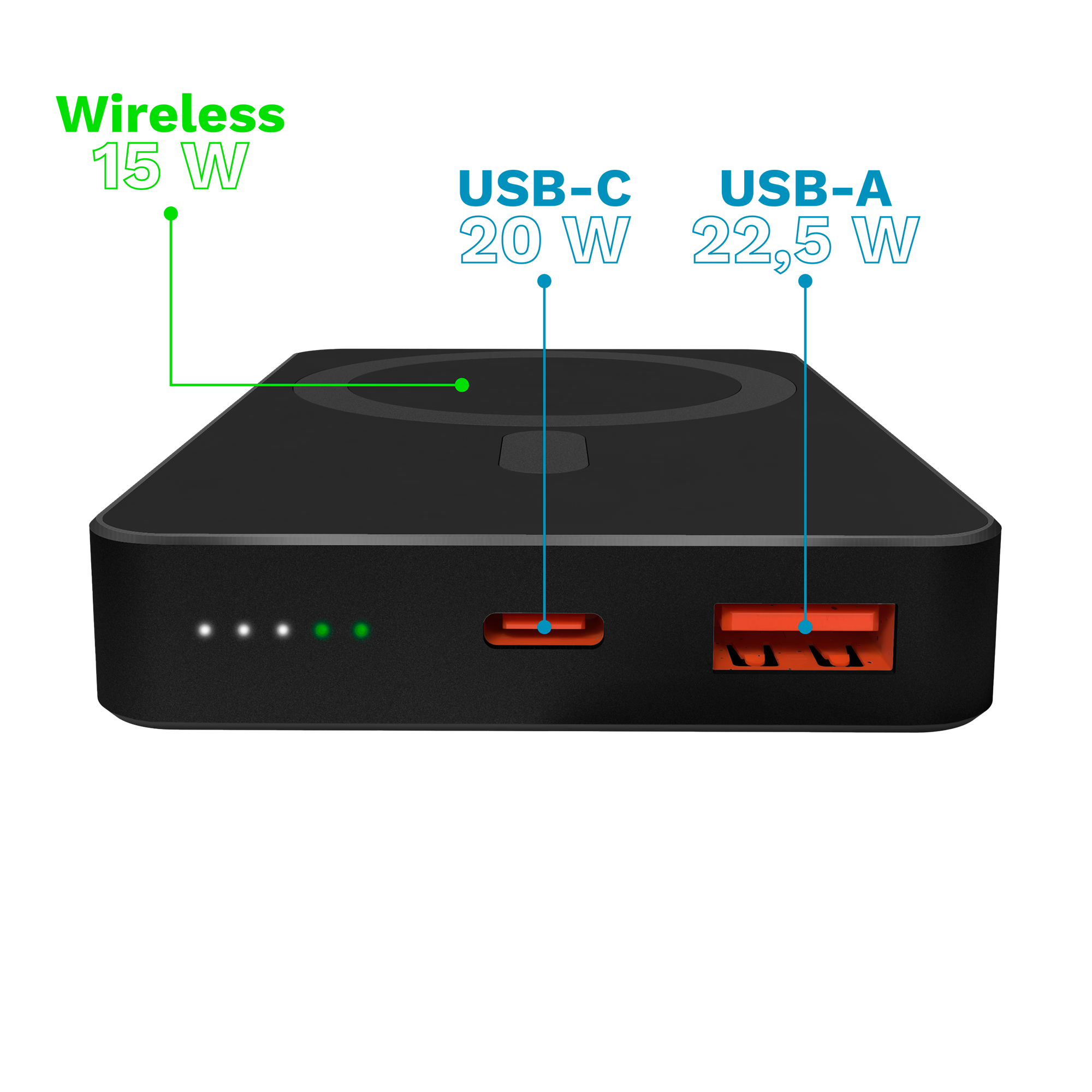<h2>Bezprzewodowe ładowanie </h2><p>Power bank KM0912 daje Ci także możliwość bezprzewodowego ładowania z maksymalną mocą 15 W. To sprawia, że pozbędziesz się kabli i w pełni wykorzystasz potencjał nowoczesnej technologii.</p>