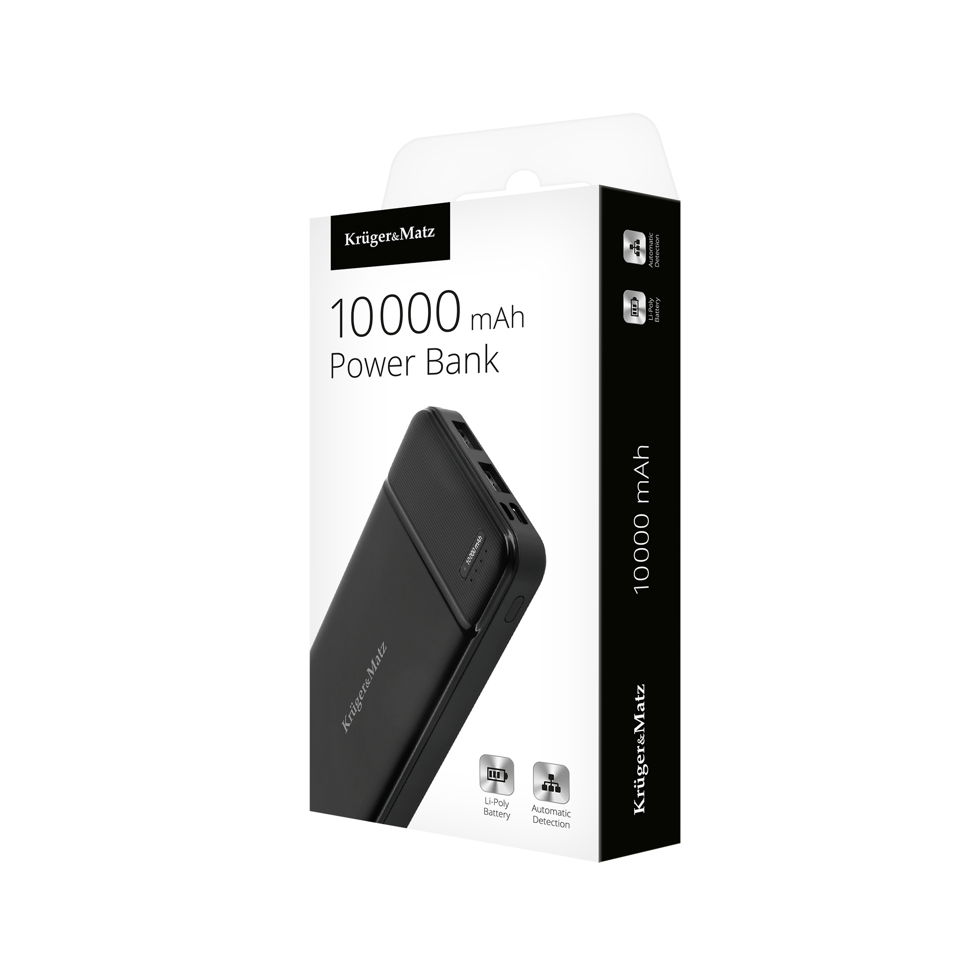<h2>Power bank 10000 mAh Kruger&Matz</h2><p>Jeśli Twoja praca wymaga od Ciebie częstego korzystania z urządzeń mobilnych w terenie, gdzie masz ograniczony dostęp do prądu, warto zawsze mieć pod ręką power bank. Kruger&Matz KM0903, dzięki dużej pojemności 10 000 mAh swobodnie naładuje Twój smartfon, tablet oraz wiele innych urządzeń. Dzięki dwóm portom USB KM0903 pozwoli Ci naładować jednocześnie dwa urządzenia. Wystarczy podłączyć kabel, a urządzenie samo wykryje połączenie i rozpocznie pracę. Power bank Kruger&Matz posiada szereg zabezpieczeń: przed przepięciem, przeciążeniem, przeładowaniem, głębokim rozładowaniem, a stan jego baterii możesz kontrolować dzięki czterem diodom umieszczonym na czarnej, solidnej obudowie. Wejścia USB typu C i micro USB pozwalają na komfortowe ładowanie urządzenia za pomocą wybranego typu kabla.</p><p></p>