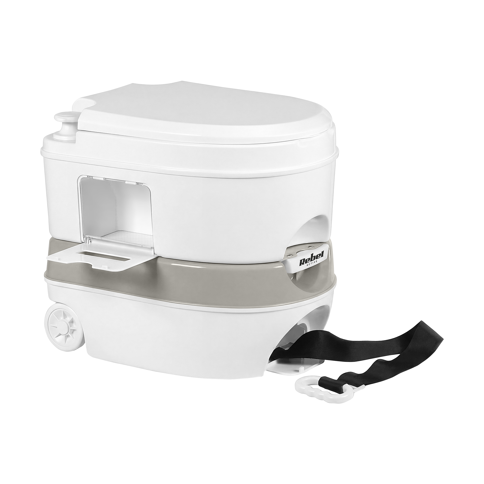 Łatwy transportDzięki wbudowanym kółkom transportowym, paskowi z rączką oraz uchwytom na obu zbiornikach, toaleta jest wyjątkowo łatwa do przenoszenia. Niewielka waga oraz kompaktowe wymiary sprawiają, że bez problemu zmieści się w kamperze, aucie czy namiocie. To idealny wybór dla osób ceniących wygodę podczas podróży.