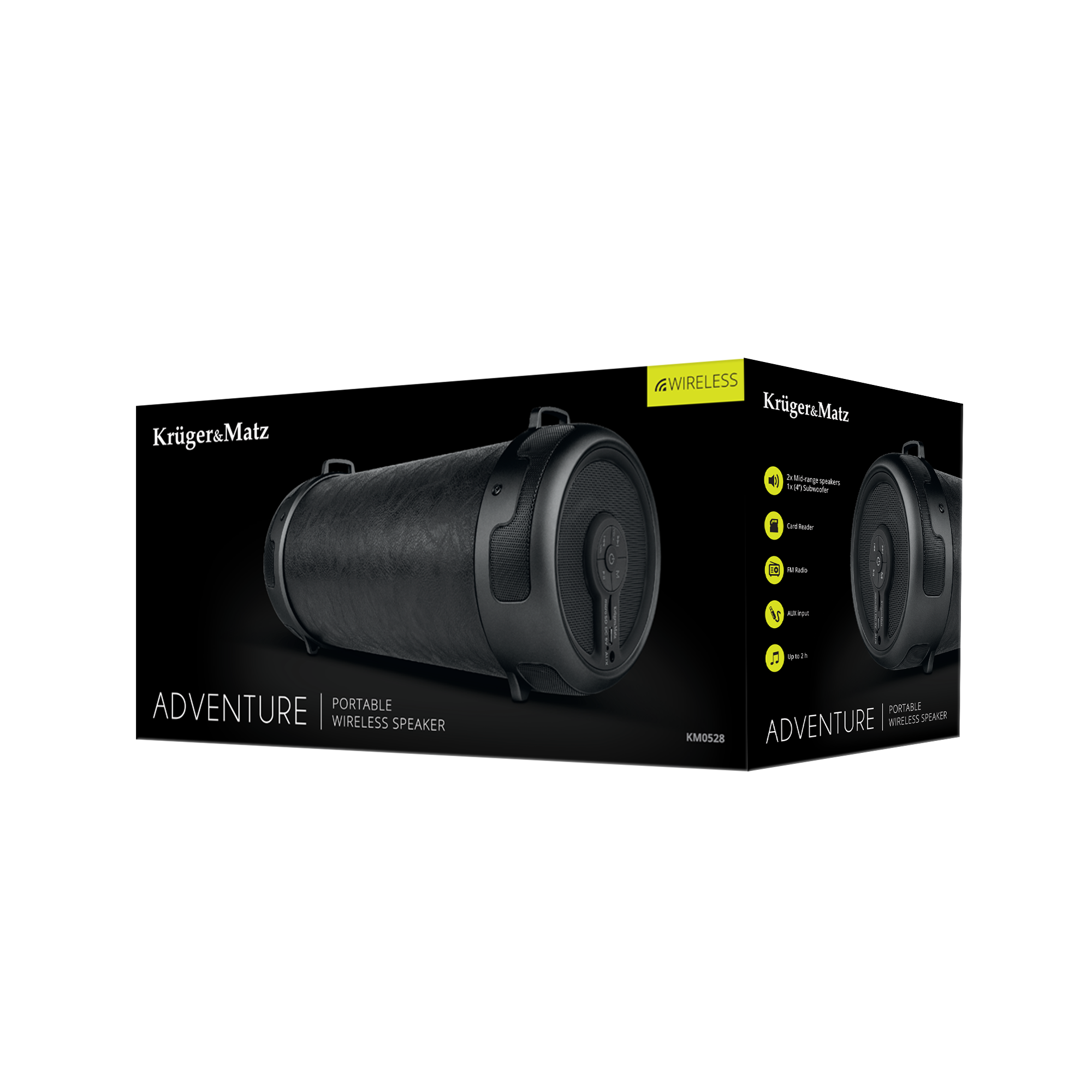 <span style="font-size: 20px;"><b>Przygoda z muzyką w tle</b></span><br /><p><span>Kruger&Matz stara się sprostać oczekiwaniom wszystkich użytkowników, dlatego jeśli należysz do grona osób, którym nie wystarczają małe głośniki Bluetooth powinieneś sprawdzić głośnik Adventure. To, co wyróżnia go spośród innych tego typu urządzeń to długi, <b>regulowany pasek na ramię</b>, który pozwoli na łatwe i wygodne noszenie. Teraz żadna piesza wycieczka nie będzie nudna. Głośnik Adventure, umili tobie i twoim towarzyszom nawet wielogodzinny spacer.</span></p>