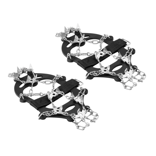 Trwałość i stabilnośćRaczki wyposażone są w 19 stalowych kolców o wysokości 14 mm, co zapewnia doskonałą przyczepność na śliskich powierzchniach. Kolce oraz łańcuchy wykonane są ze stali nierdzewnej, co gwarantuje ich odporność na korozję i trwałość. Silikonowa obejma jest elastyczna i dopasowuje się do różnych rozmiarów butów, zapewniając stabilność i komfort noszenia.