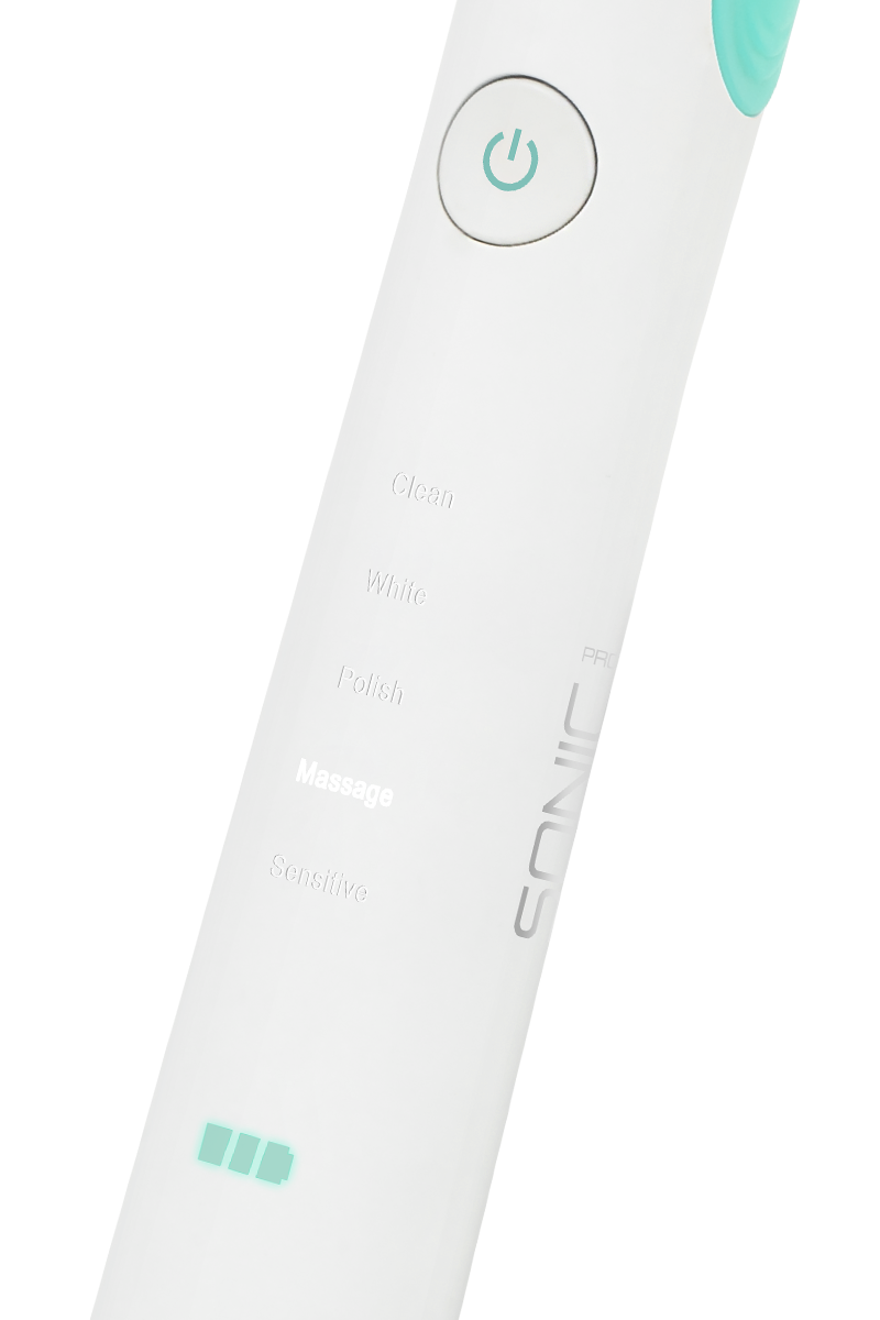 Automatyczne wyłączanieSzczoteczka SONIC PRO to zaawansowane technologicznie urządzenie, które doskonale chroni i pielęgnuje jamę ustną. Co ważne urządzenie pomoże Ci dostosować się do zaleceń stomatologów. Co 30 sekund szczoteczka poinformuje Cię o konieczności zmiany czyszczonej części jamy ustnej, a po upływie dwóch minut automatycznie się wyłączy.