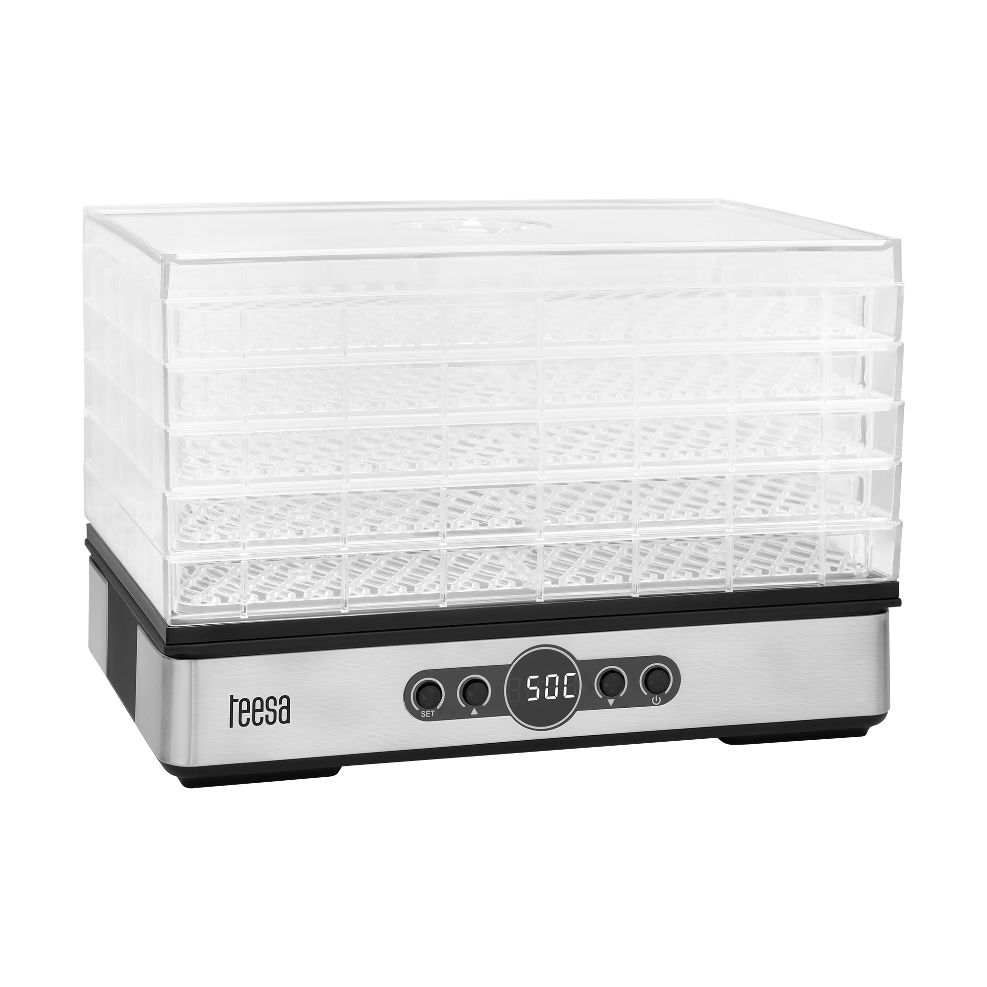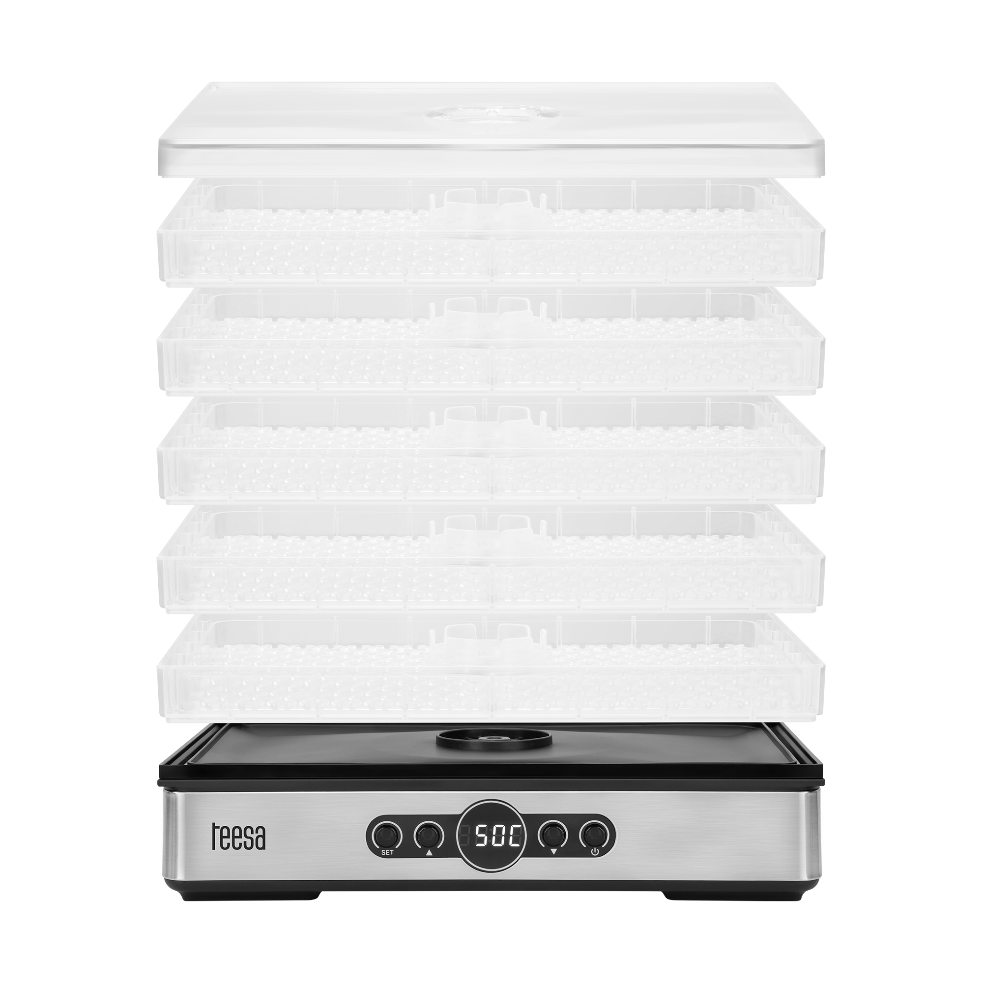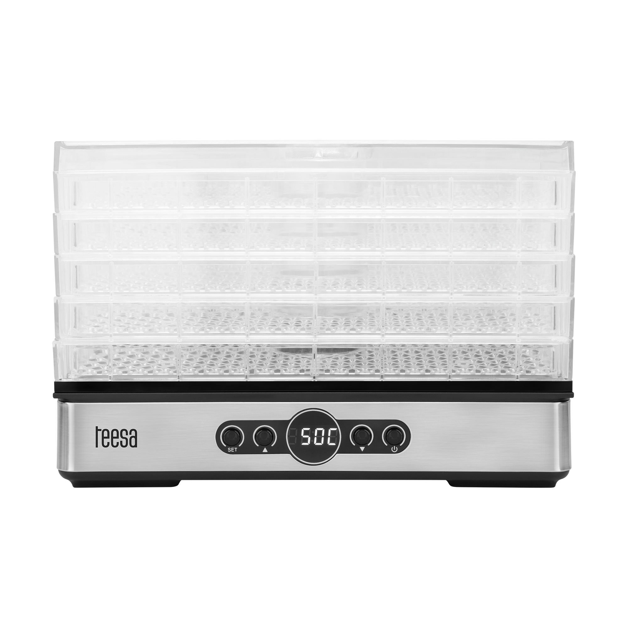 <h2>5 przezroczystych sit</h2><p>Suszarka Teesa oferuje aż 5 dużych, przezroczystych sit, które pomieszczą łącznie do 1,7 kg produktów. Przezroczyste tace umożliwiają kontrolę suszenia bez konieczności otwierania urządzenia, co zapewnia stałą temperaturę i efektywność.</p>