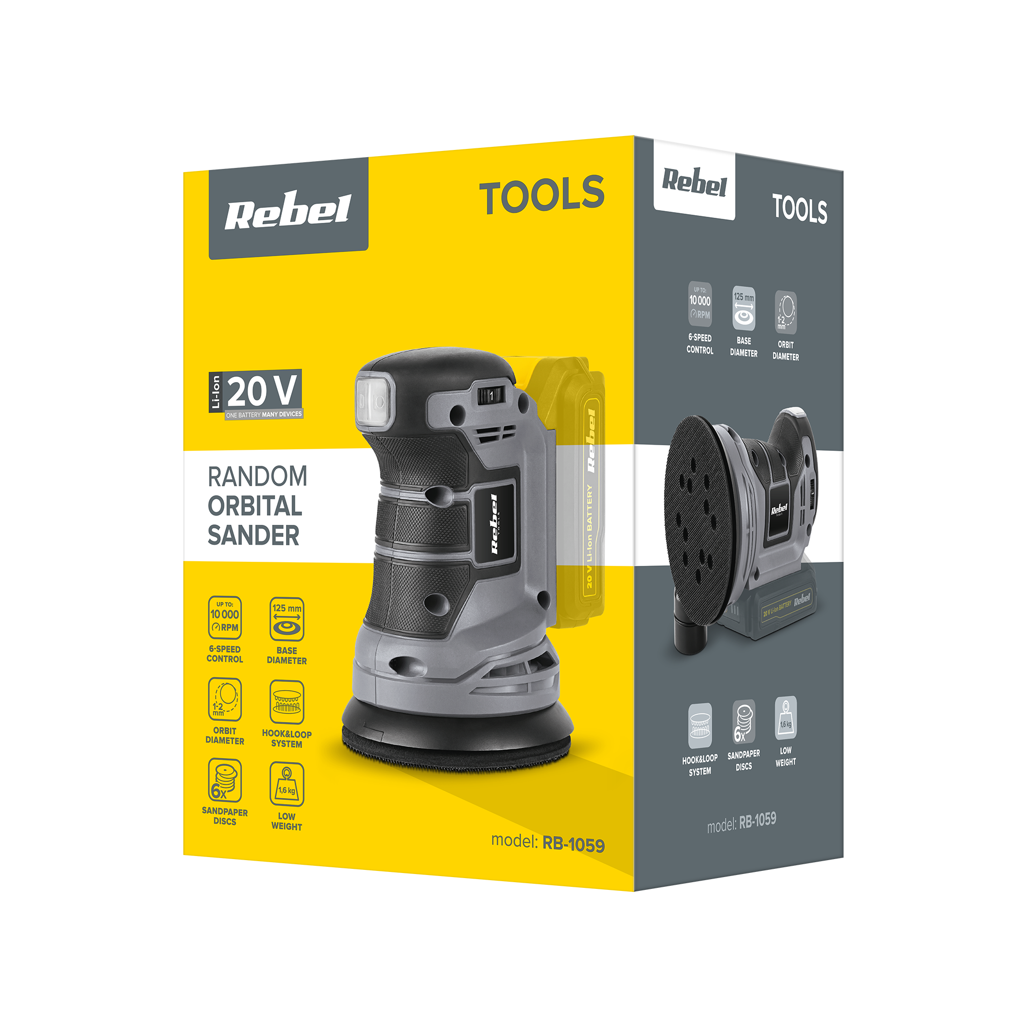 <h2>Szlifierka mimośrodowa akumulatorowa Rebel Tools RB-1059</h2><p>Jeśli w Twoim przydomowym warsztacie brakuje tylko <b>szlifierki mimośrodowej</b>, polecamy model RB-1059 z serii Rebel Tools. Urządzenie to wykorzystując jednocześnie <b>ruch wahadłowy i obrotowy </b>szybko i idealnie wygładzi wszelkie płaszczyzny, nawet te lekko zaokrąglone.</p>