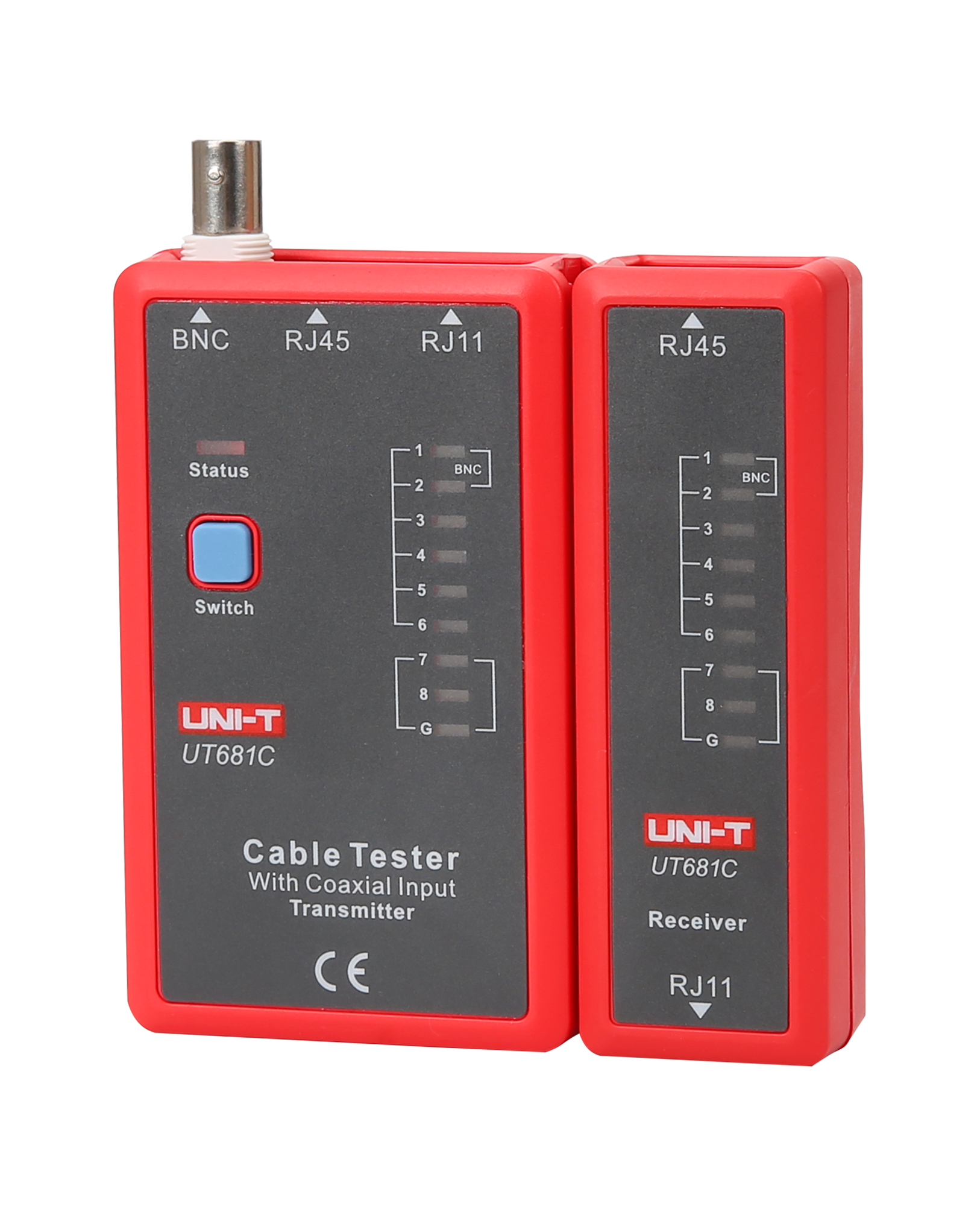 Praktyczna konstrukcjaUni-T UT681C jest wyposażony w nadajnik i odbiornik, które są kompaktowe i lekkie, co zapewnia wygodę użytkowania i łatwość w przenoszeniu. Nadajnik ma wymiary 102 x 62 x 28 mm i waży 87 g, podczas gdy odbiornik ma wymiary 102 x 37 x 28 mm i waży 51 g. Do zestawu dołączona jest bateria oraz przejściówka BNC-RJ45, co zapewnia pełne przygotowanie do użycia zaraz po zakupie.