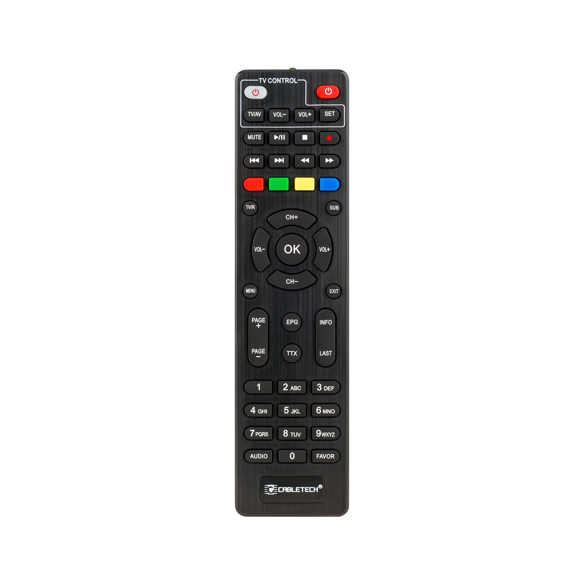 Korzystaj tylko z jednego pilotalegancka, czarna obudowa w połączeniu z niewielkim rozmiarem sprawia, że tuner DVBT Cabletech będzie doskonałe komponował się na Twojej szafce RTV. Komfort obsługi urządzenia gwarantuje poręczny pilot z funkcją TV Control. Odpowiednie zaprogramowanie przycisków sprawia, że jednym pilotem szybko i bez problemu będziesz mógł zarządzać funkcjami zarówno telewizora, jak i tunera.