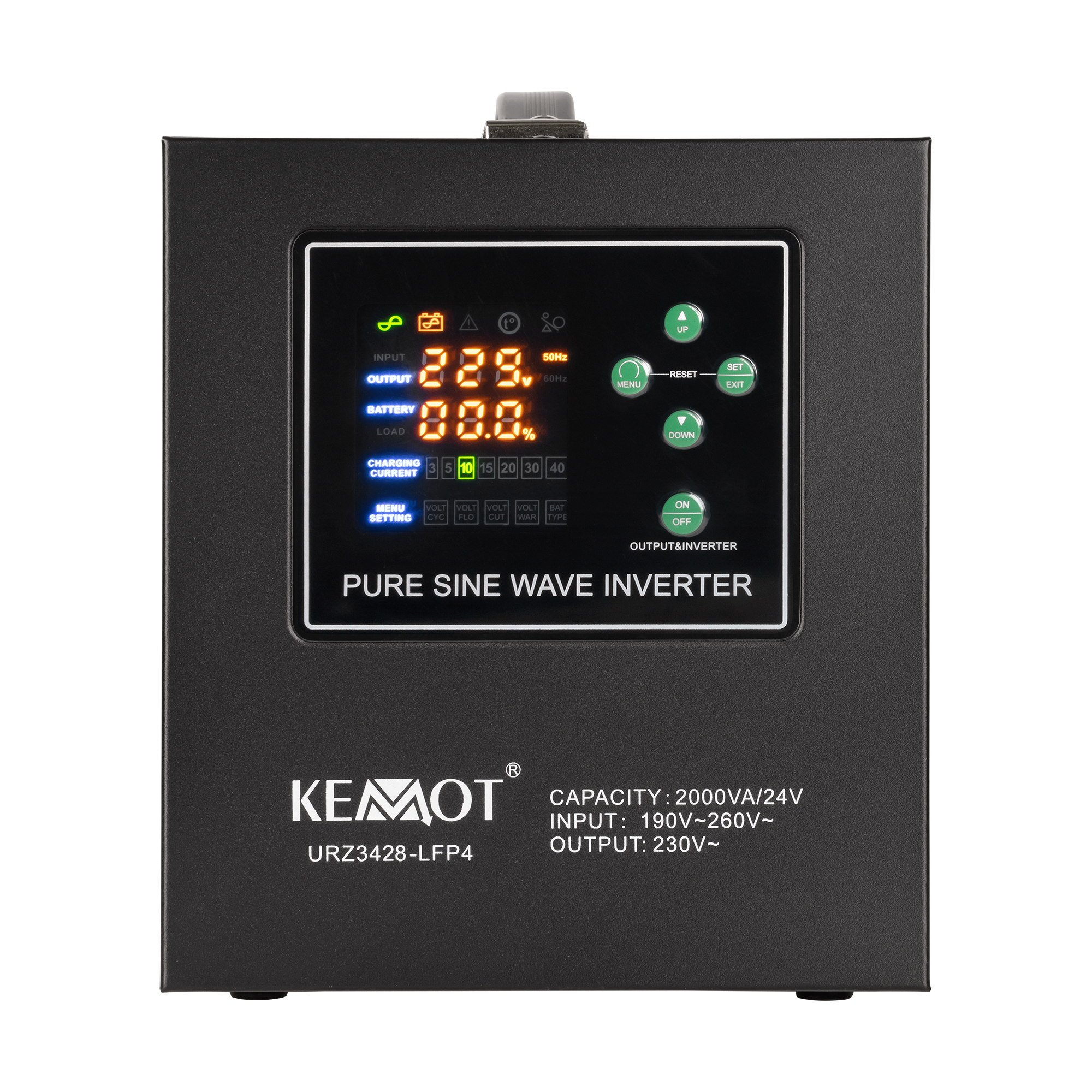 Kompaktowa obudowaRozbudowana funkcjonalność przetwornic KEMOT PROsolar została zamknięta w niewielkich rozmiarów solidnej obudowie w kolorze czarnym. Aktualny status pracy urządzenia sprawdzisz na czytelnym wyświetlaczu LED. A jeśli np. w kotłowni lub rozdzielni elektrycznej nie masz miejsca na ustawienie urządzenia, możesz skorzystać ze zintegrowanego uchwytu i zawiesić je na ścianie.