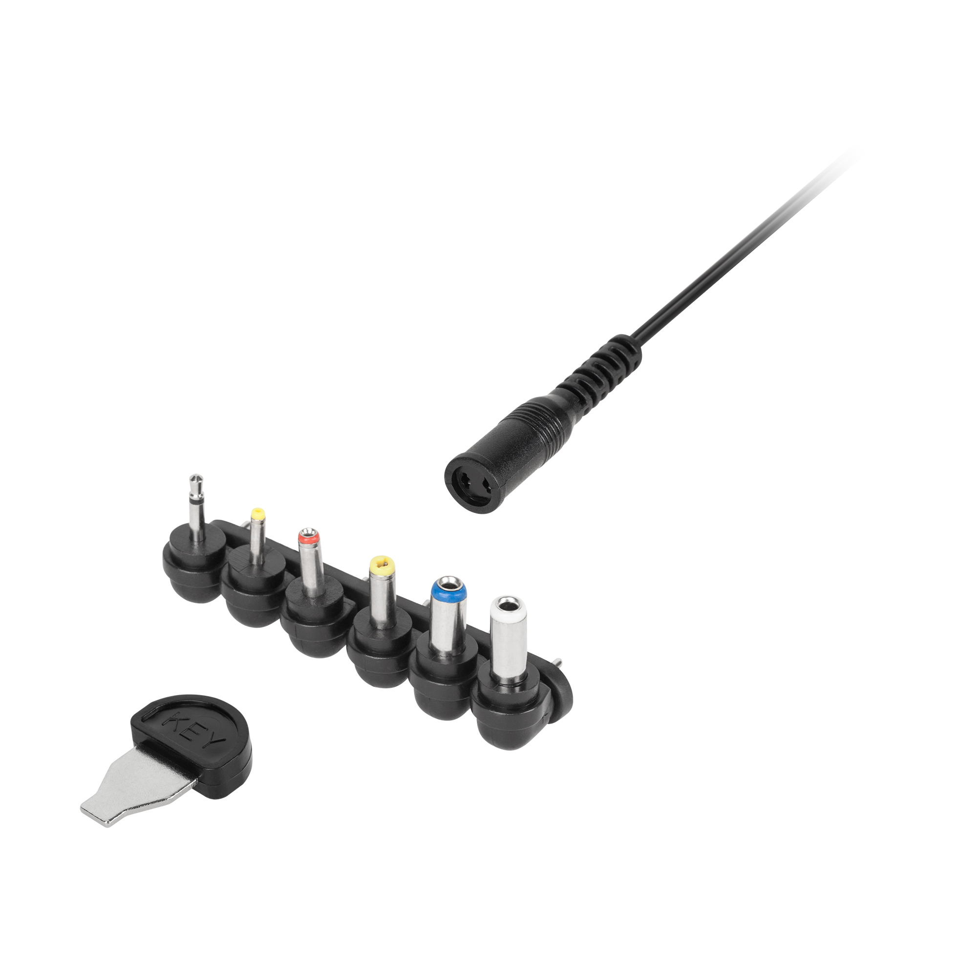 6 uniwersalnych wtyczek DC: 3,5x1,35 / 5,5x2,1 / 5,5x2,5 / 2,35x0,7 / 4,0x1,7 / 2,5 mono