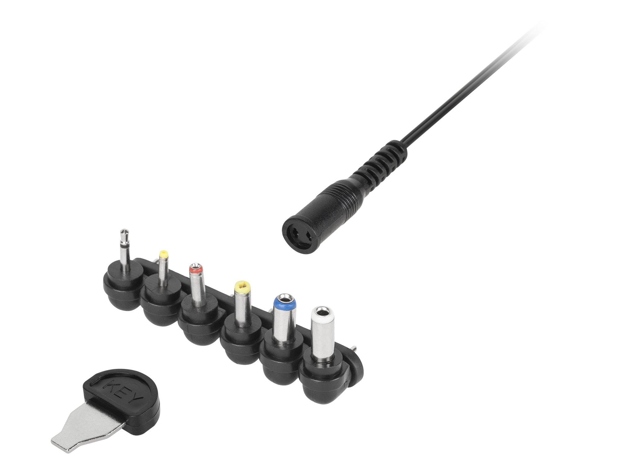 6 uniwersalnych wtyków: 3,5x1,35 / 5,5x2,1 / 5,5x2,5 / 2,35x0,7 / 4,0x1,7 / 2,5 mono