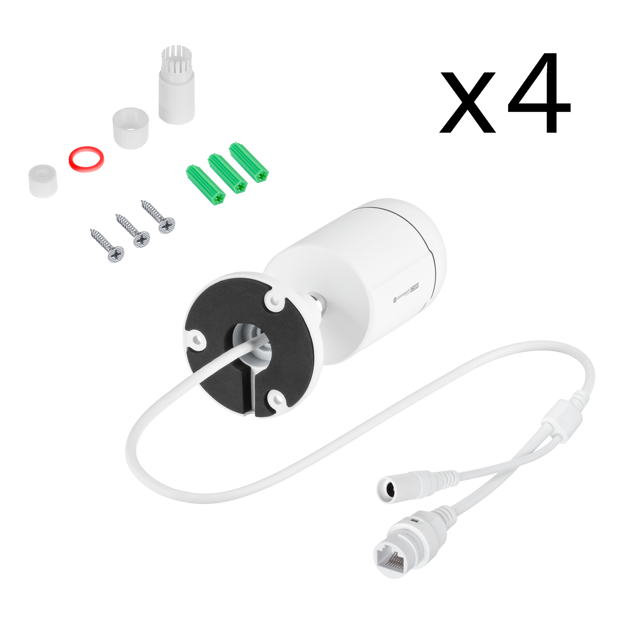 Zawartość zestawu: rejestrator, zasilacz rejestratora, kamera (4 szt.), kabel RJ-45/15 m (4 szt.) mysz
