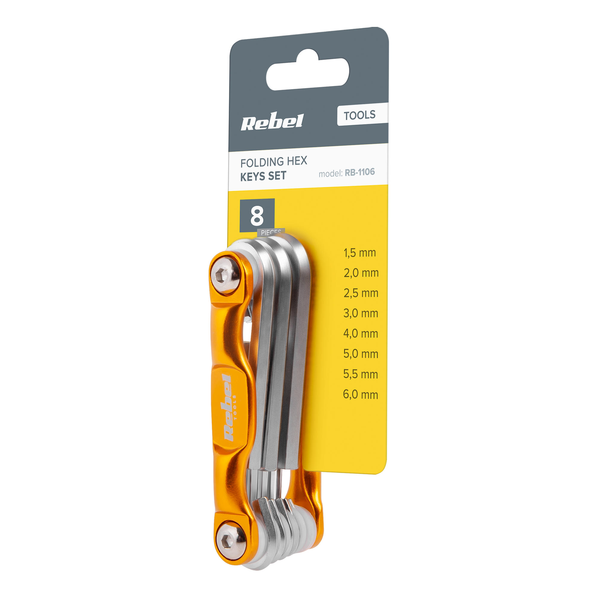 8 kluczy Hex: 1,5/ 2/ 2,5/ 3/ 4/ 5/ 5,5/ 6 mm