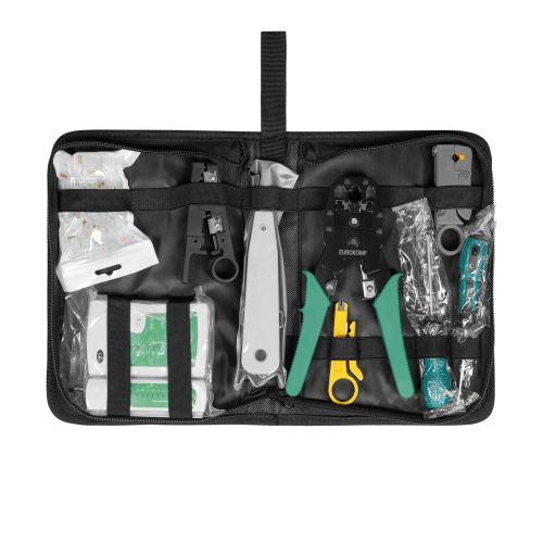 Zestaw narzędzi do budowy sieci komputerowych również w technologii Pass Through (wtyków przelotowych):