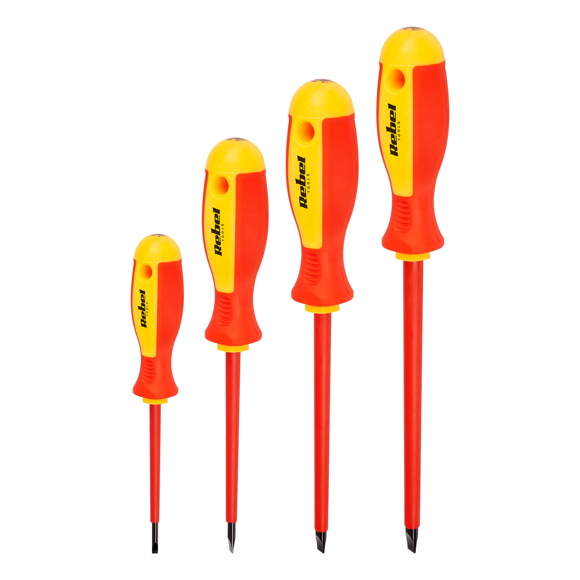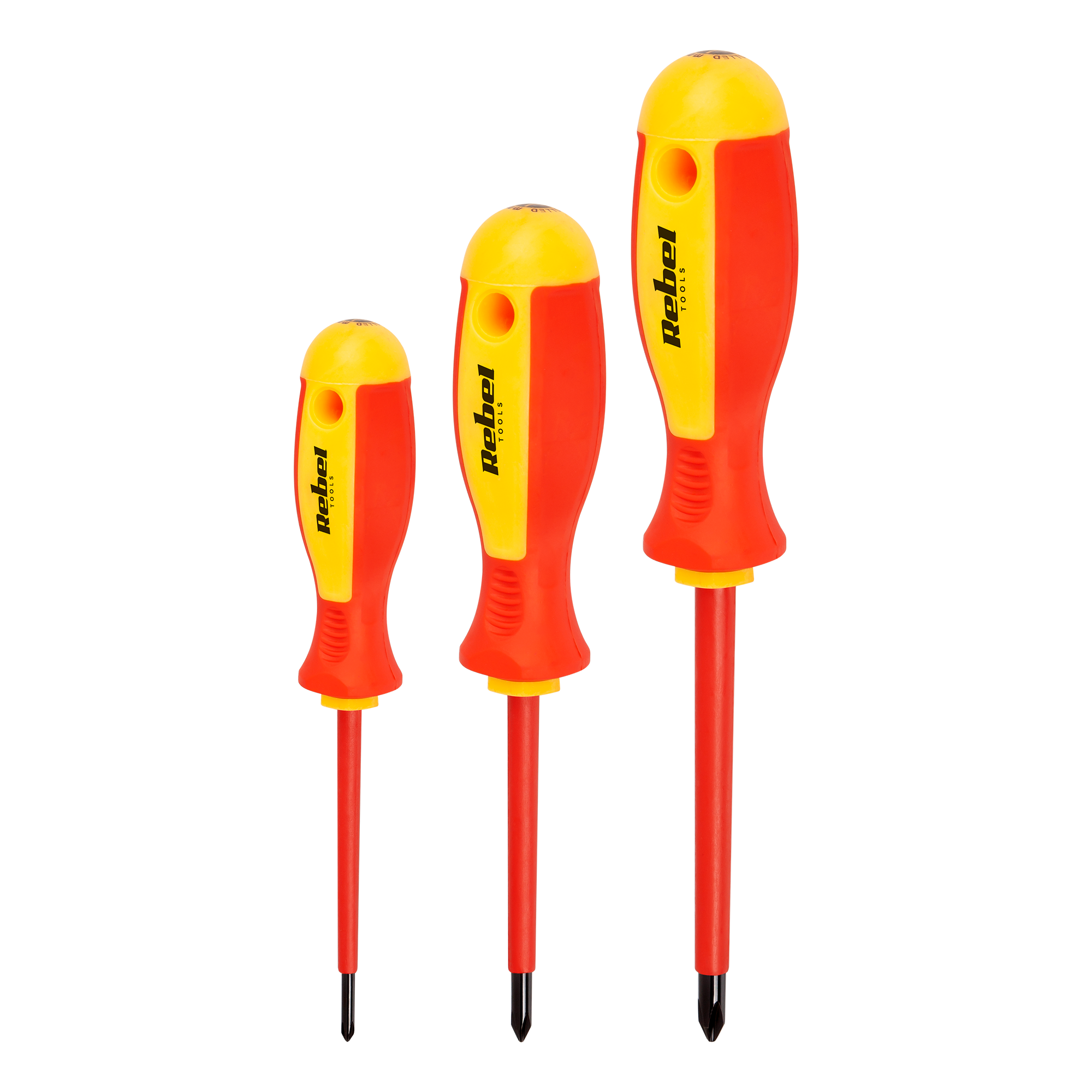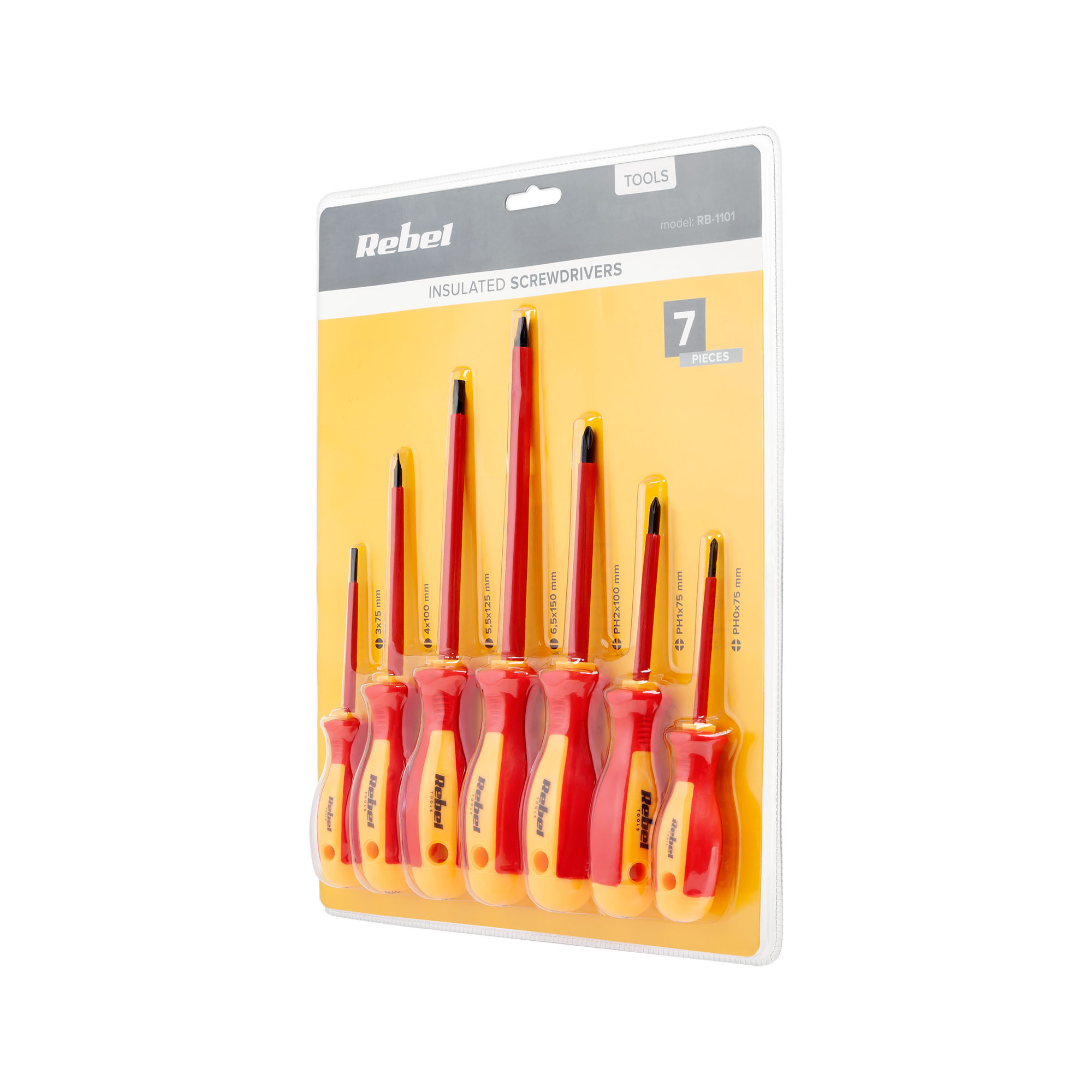 <h2>Zestaw śrubokrętów izolowanych Rebel Tools</h2><p>Zależy Ci na bezpieczeństwie podczas napraw i remontów? Koniecznie sięgnij po zestaw śrubokrętów izolowanych Rebel Tools z dwoma rodzajami wkrętaków: płaskimi i krzyżowymi. Dzięki specjalnej powłoce ich uchwyty doskonale nadają się do prac przy instalacjach pod wysokim napięciem do 1000 V, a magnetyczne końcówki zdecydowanie podnoszą komfort w czasie pracy, dzięki czemu z łatwością wykręcisz lub wkręcisz śruby w konstrukcji czy instalacji. </p>