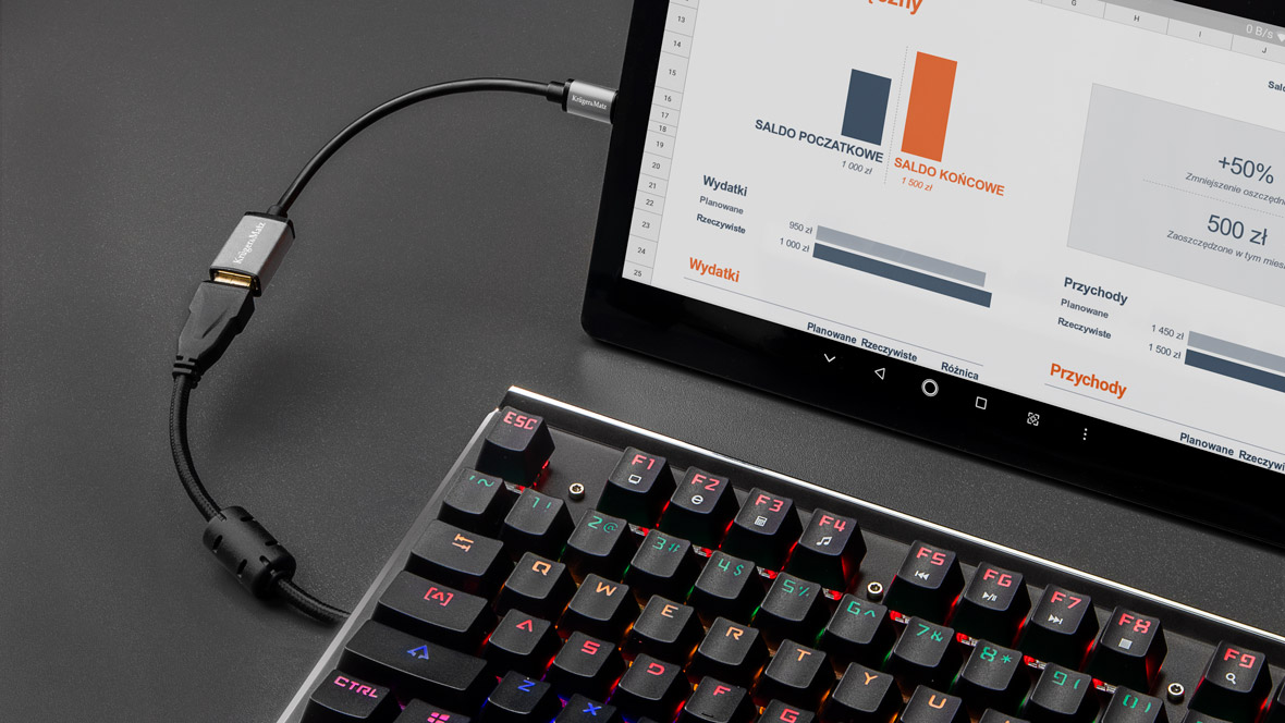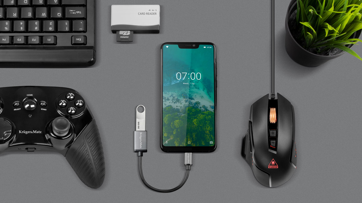 FunkcjonalnośćPodłączenie pamięci zewnętrznej to nie jedyna korzyść jaka płynie z posiadania adaptera Kruger&Matz. Dzięki temu niepozornemu urządzeniu możesz zwiększyć także funkcjonalność swojego tableta. Podłącz klawiaturę, aby stworzyć sobie wygodne narzędzie pracy. Kabel przypadnie również do gustu fanom gier na smartfona – z jego pomocą można podłączyć pad zwiększając komfort podczas gry.