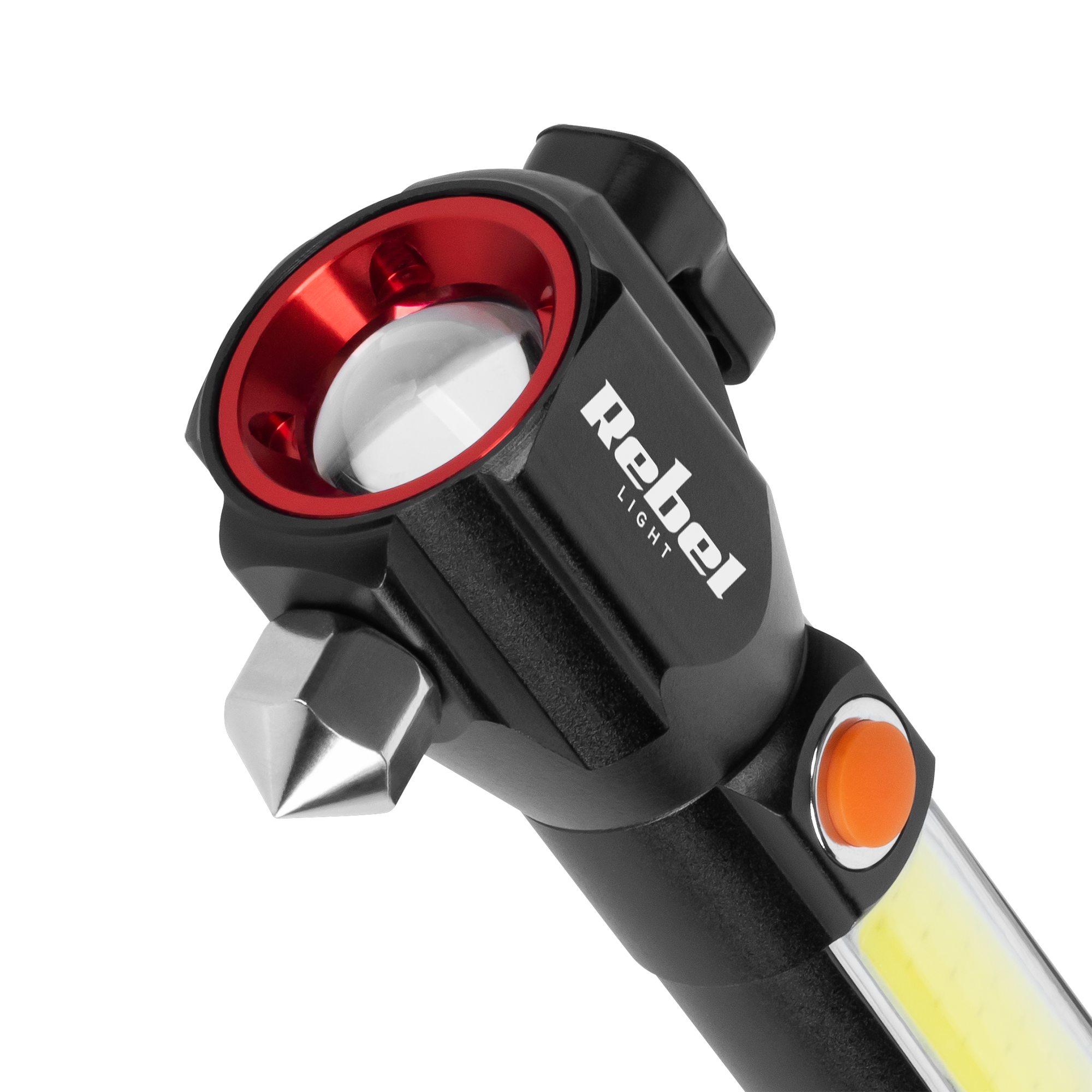 Latarka multifunkcyjnaJednym z najważniejszych elementów latarki Rebel URZ0941 jest wbudowany młotek do szyb. Dzięki niemu w razie awarii lub wypadku, można łatwo wybić szybę i uwolnić się z pojazdu. Ponadto, produkt posiada nożyk, co jest szczególnie ważne w przypadku nagłych sytuacji. Dopełnieniem wyposażenia jest magnes, który umożliwia łatwe przytwierdzenie latarki do metalowych powierzchni.