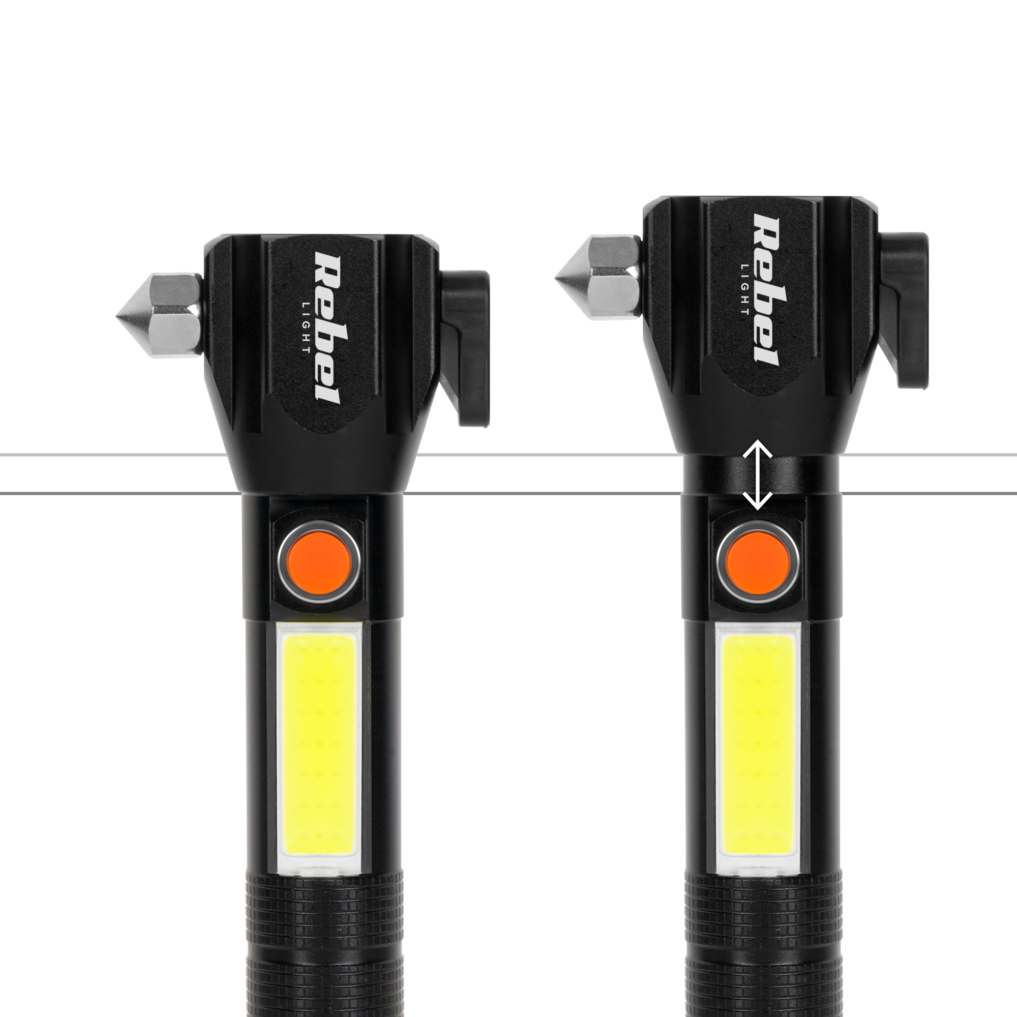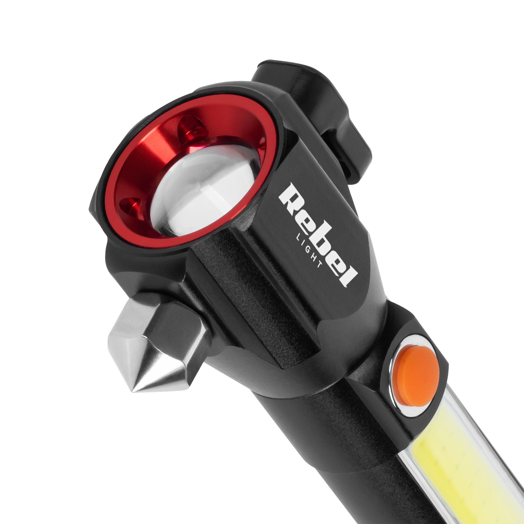Latarka multifunkcyjnaJednym z najważniejszych elementów latarki Rebel URZ0941 jest wbudowany młotek do szyb. Dzięki niemu w razie awarii lub wypadku, można łatwo wybić szybę i uwolnić się z pojazdu. Ponadto, produkt posiada nożyk, co jest szczególnie ważne w przypadku nagłych sytuacji. Dopełnieniem wyposażenia jest magnes, który umożliwia łatwe przytwierdzenie latarki do metalowych powierzchni.