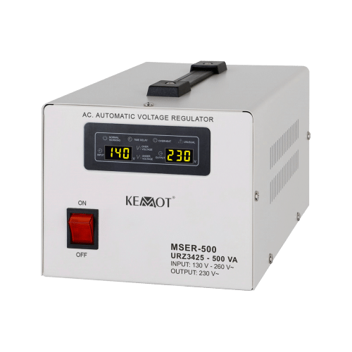 Automatyczny stabilizator napięcia KEMOT MSER-500Pomimo, że w Polsce napięcie wynosi 230 V, to jednak często zdarzają się sytuacje, że jest ono niestabilne. Efektem tego może być nagłe wyłączenie urządzeń lub ich niestabilna praca, które wpływają na obniżenie żywotności urządzeń elektronicznych. Dlatego, aby ustrzec się przed tego typu sytuacjami, warto kupić automatyczny stabilizator napięcia KEMOT MSER-500.