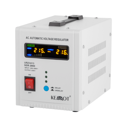 Automatyczny stabilizator napięcia KEMOT SER-2000Pomimo, że w Polsce napięcie wynosi 230 V, to jednak często zdarzają się sytuacje, że jest ono niestabilne. Efektem tego może być nagłe wyłączenie urządzeń lub ich niestabilna praca, które wpływają na obniżenie żywotności urządzeń elektronicznych. Dlatego, aby ustrzec się przed tego typu sytuacjami, warto kupić automatyczny stabilizator napięcia KEMOT SER-2000.